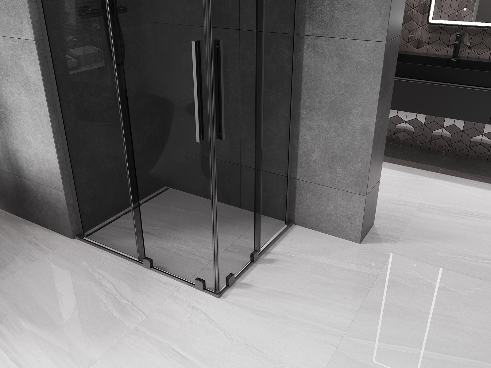 Mexen Velar L Duo slankiojanti dušo kabina 90 x 80 cm, grafitas, šautuvas metalas - 871-090-080-02-43-95
