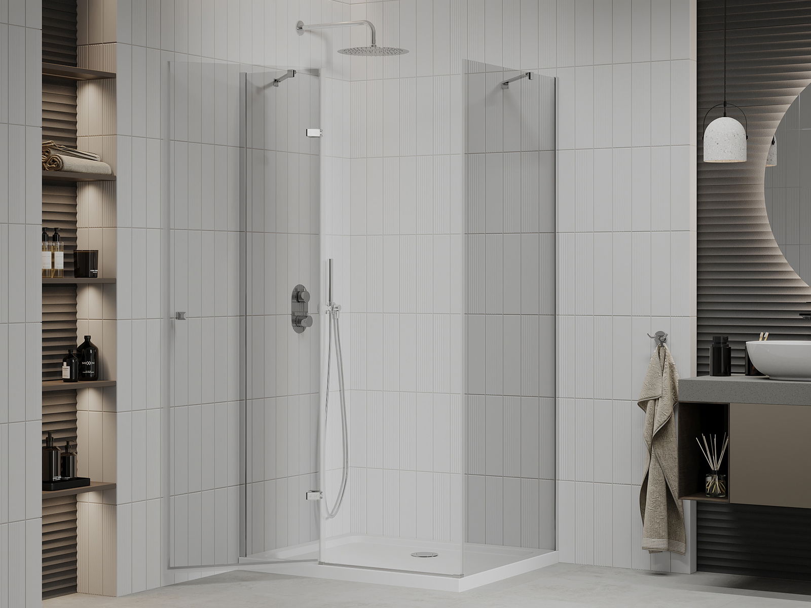Mexen Roma dušo kabina, atidaroma, 120 x 90 cm, skaidri, chromuota + padėklas Flat - 854-120-090-01-00-4010