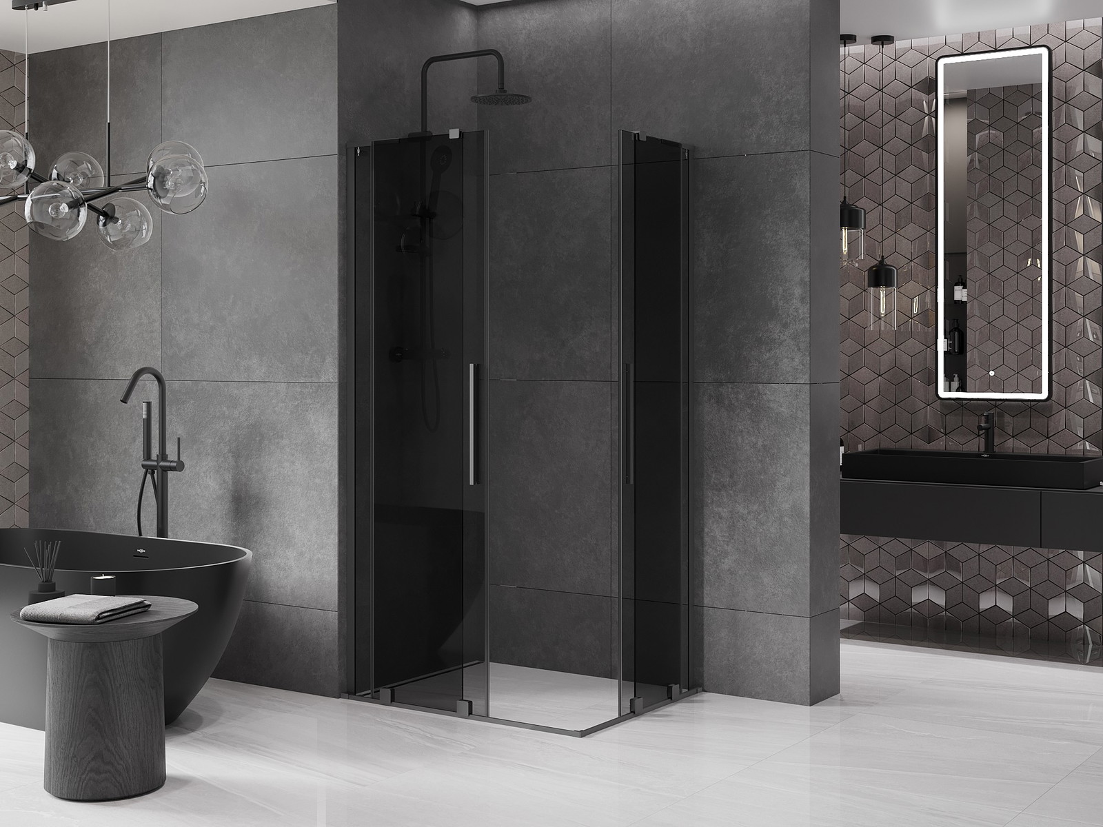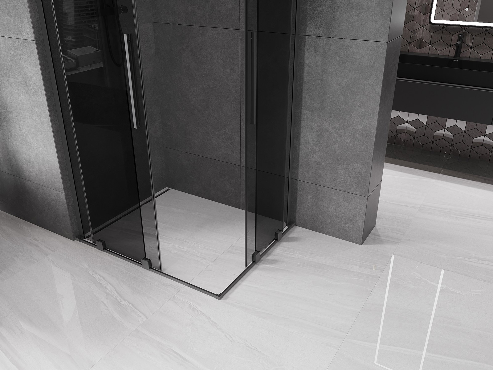 Mexen Velar L Duo stumdomojo dušo kabina 100 x 90 cm, grafitas, gun metalas - 871-100-090-02-43-95