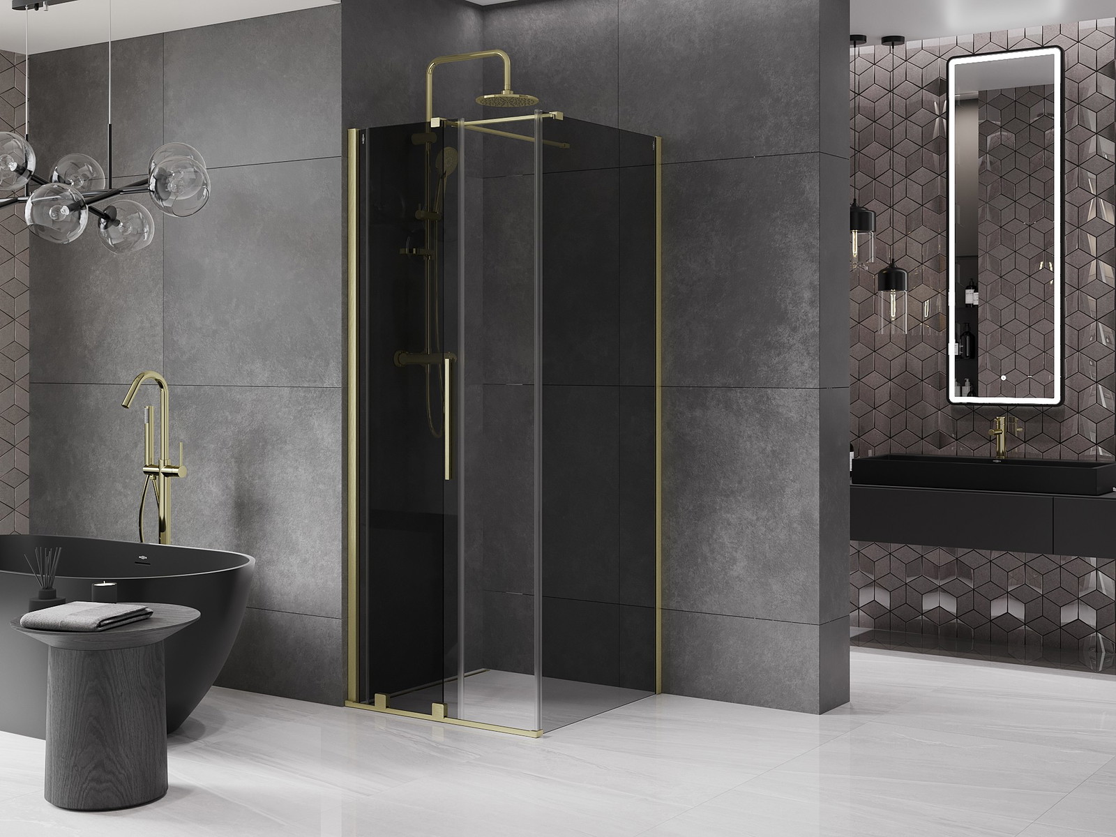 Mexen Velar Stumdomo dušo kabina 100 x 100 cm, grafitas, auksas šepečiuotas - 871-100-100-41-55