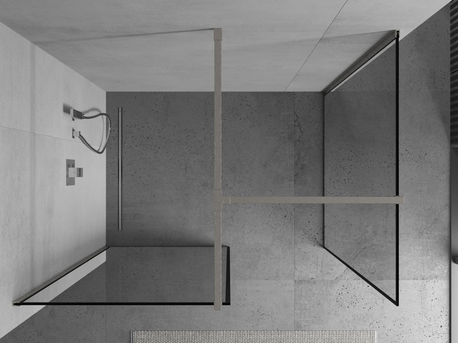 Mexen Kioto dušo sienelė Walk-in 100 x 100 cm, juodas rėmas, šlifuotas nikelis - 800-100-202-97-70-100