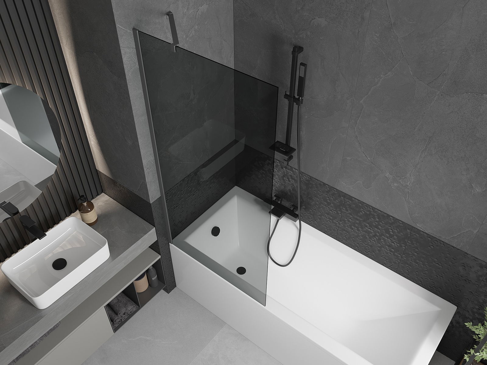 Efektyvi apsauga nuo vandens išsiliejimo maudymosi metu. Sienelė turi tarpines, kurios idealiai priglunda prie stiklo paviršiaus ir vonios krašto. Funkcionalus sprendimas, užtikrinantis saugumą ir lengvą švaros palaikymą.