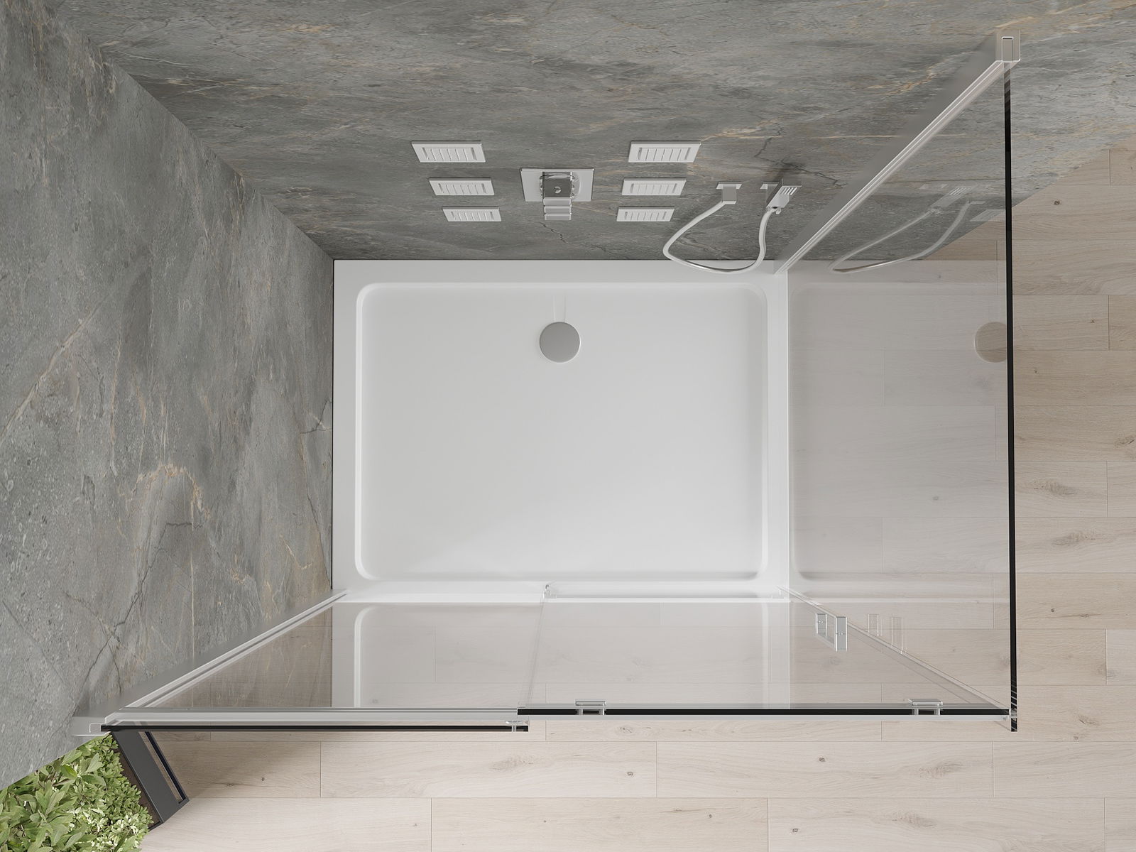 Dėl universalaus tvirtinimo sistemos, dušo durys gali būti sumontuotos dešinėje arba kairėje pusėje, atsižvelgiant į poreikius. Tai leidžia lengvai suprojektuoti dušą, pritaikytą vonios kambario erdvei.