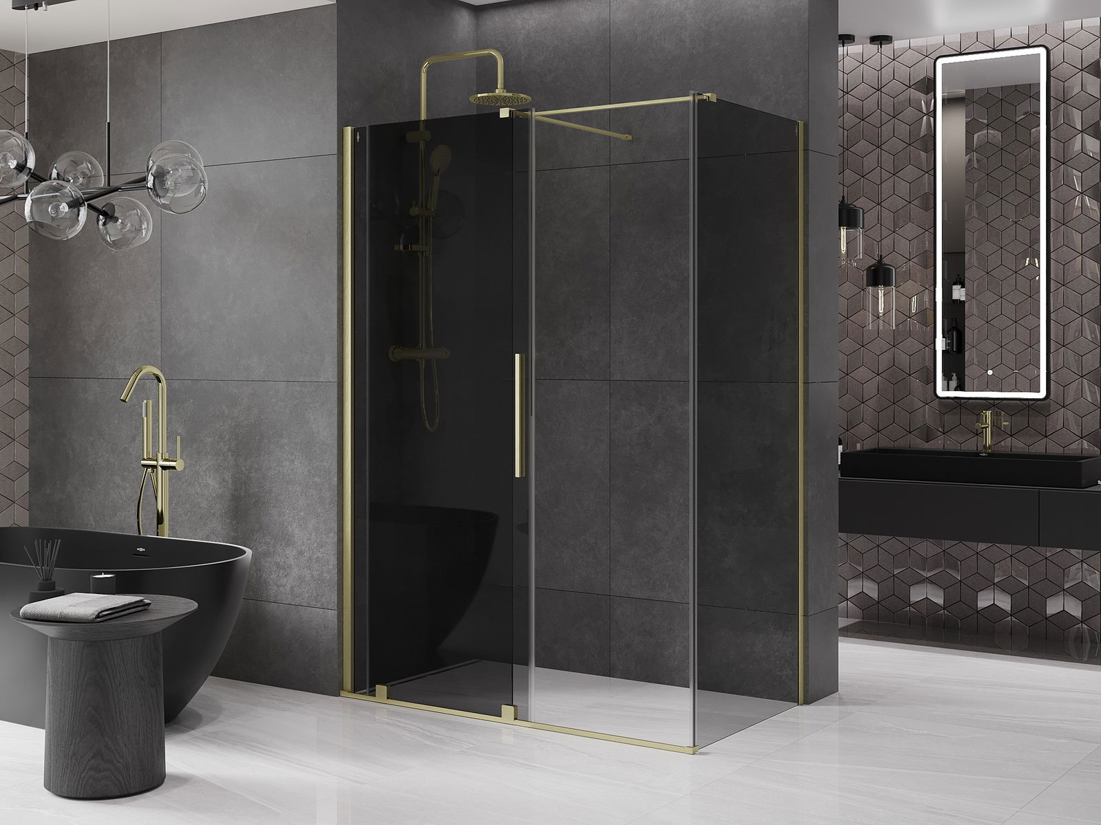 Mexen Velar slankiojančios dušo kabina 140 x 85 cm, grafitas, šlifuotas auksas - 871-140-085-41-55