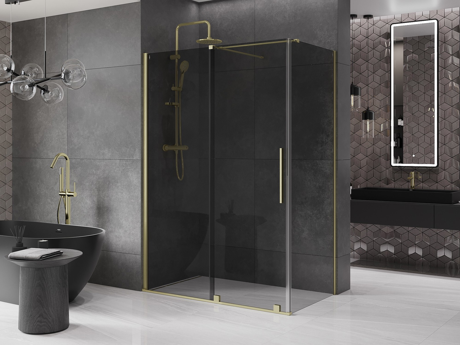 Mexen Velar stumdomas dušo kabina 160 x 75 cm, grafitas, auksas šlifuotas - 871-160-075-41-55