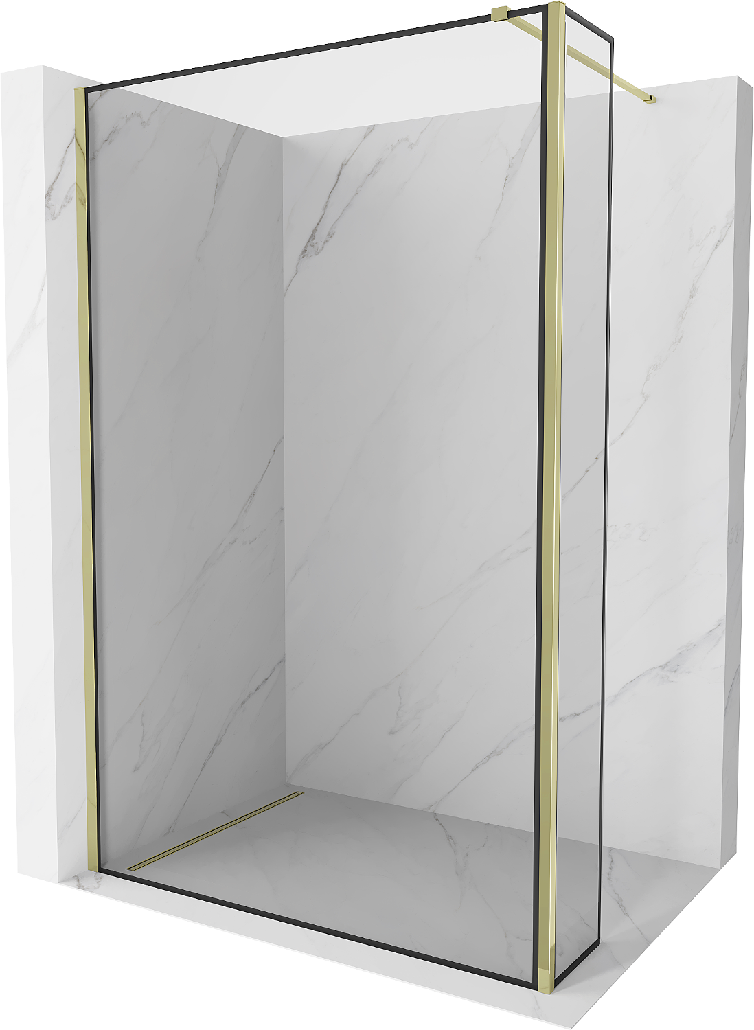 Mexen Kioto dušo siena Walk-in 100 x 40 cm, juodas rėmas, auksinė - 800-100-212-50-70-040