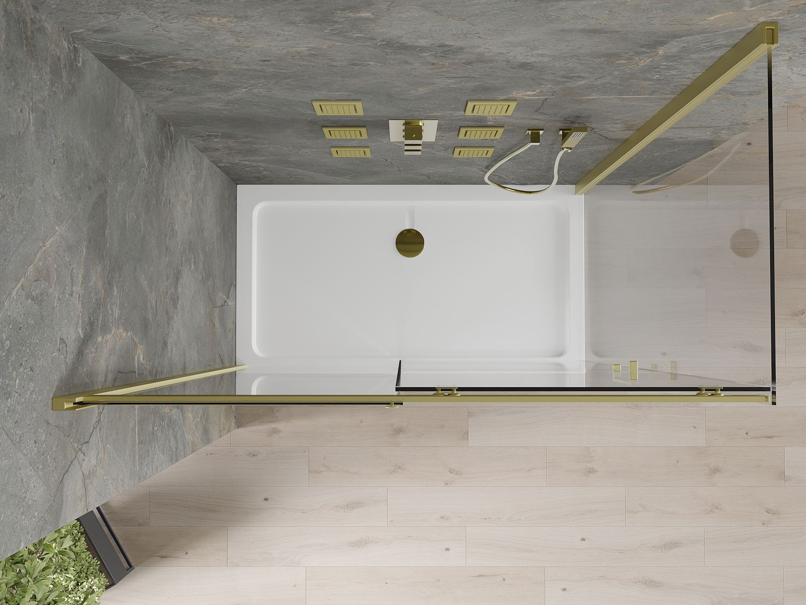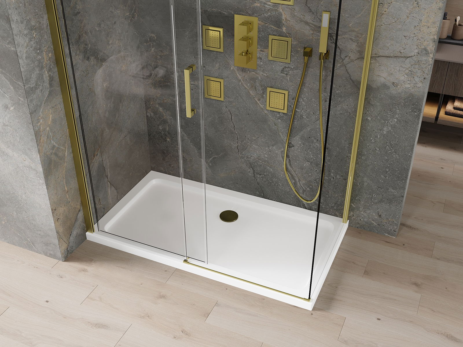 Mexen Omega slankiojama dušo kabina 140 x 70 cm, permatoma, aukso spalva + plokščias padėklas - 825-140-070-50-00-4010