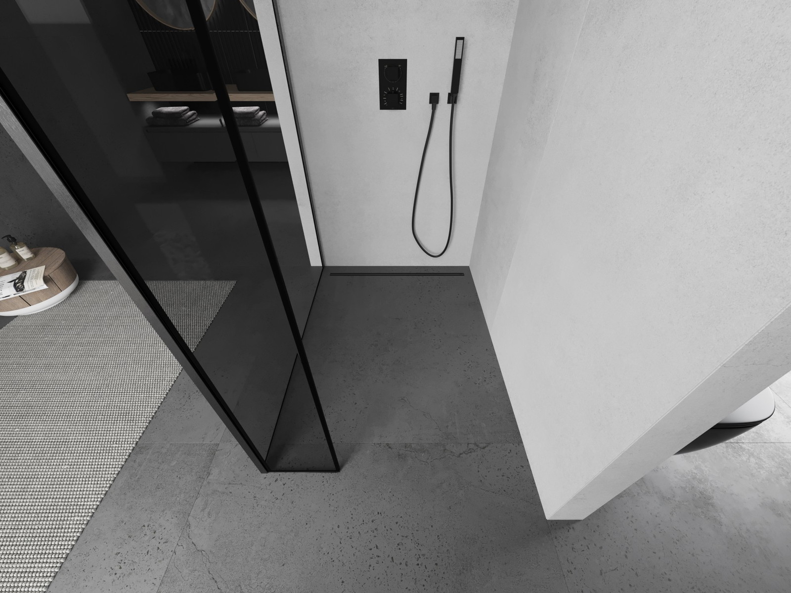 Mexen Kioto dušo sienelė Walk-in 100 x 40 cm, juodas rėmelis, gun gray šveistas - 800-100-212-66-70-040