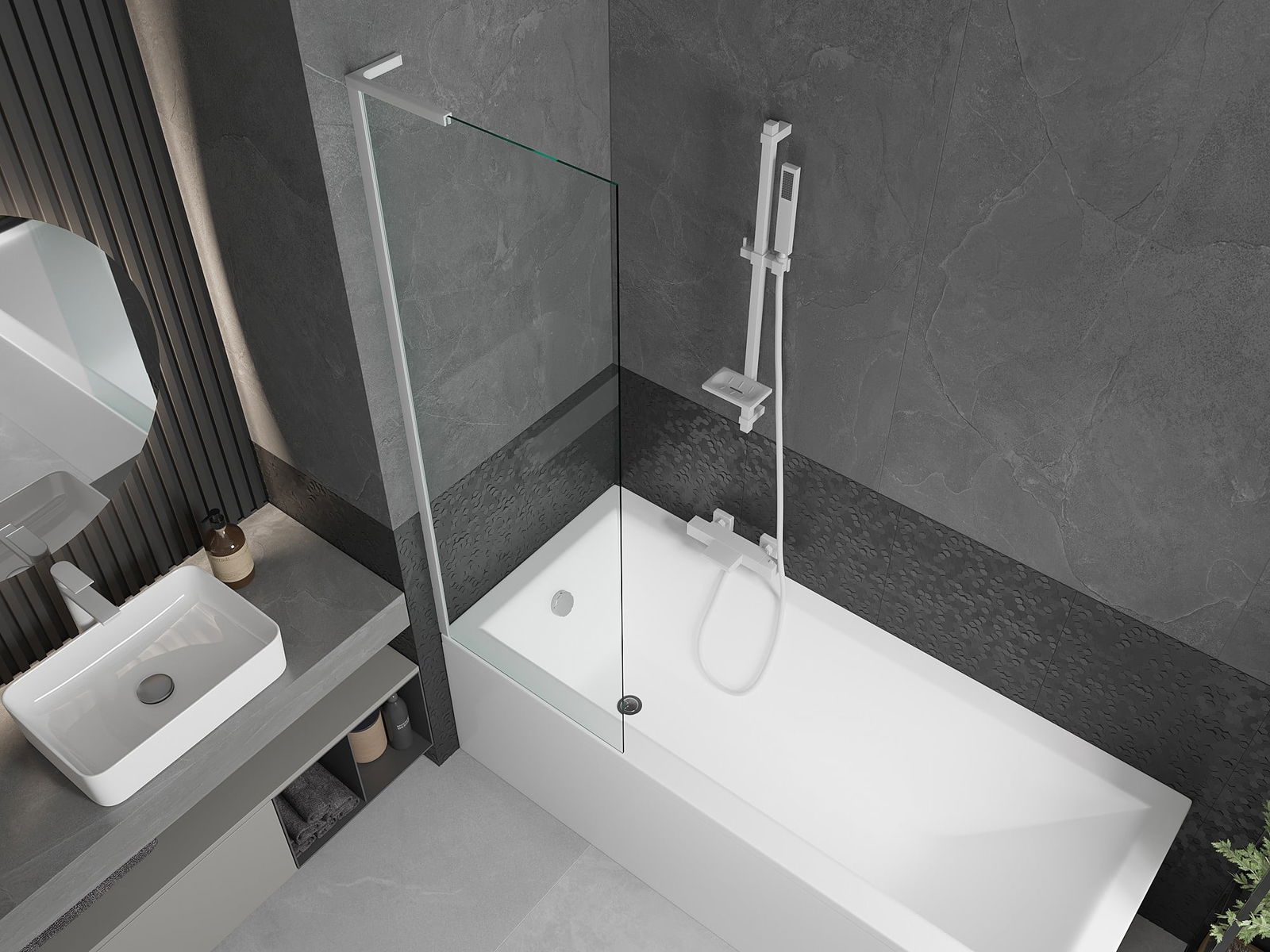 Mexen Next L voniai skirtas 1-duris barjeras 60 x 150 cm, permatomas, baltas - 895-060-000-03-00-20