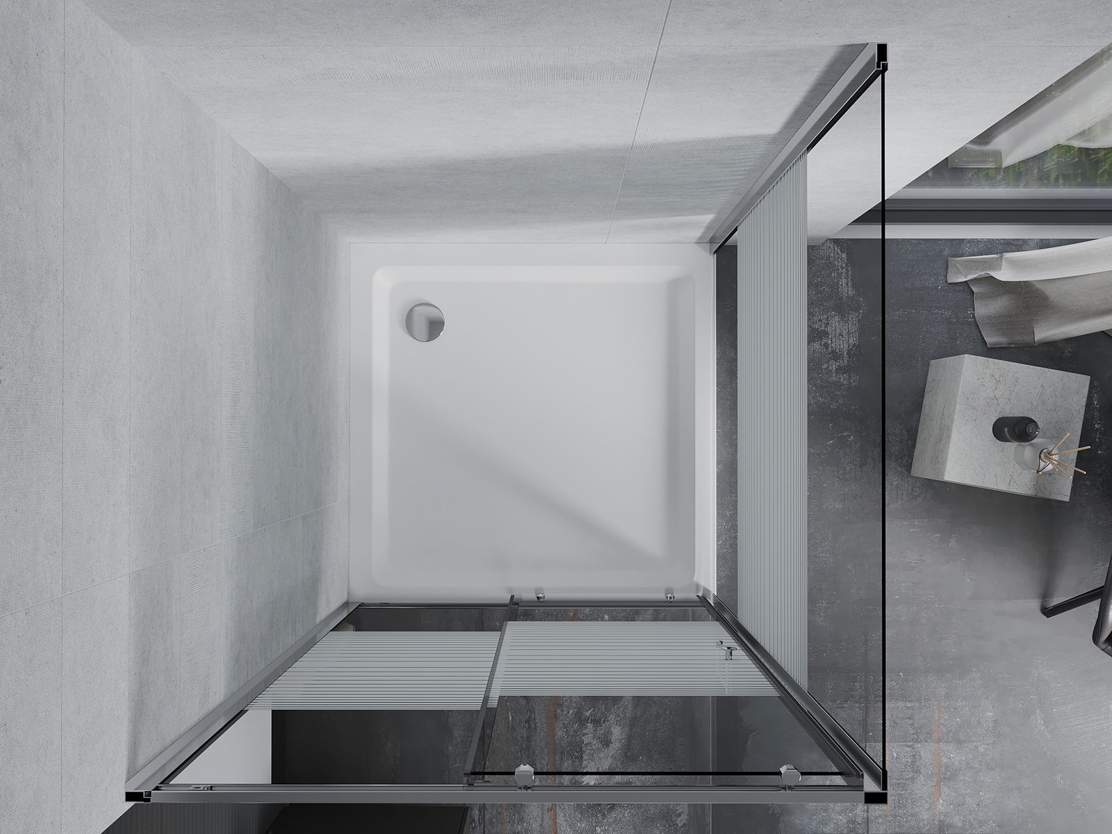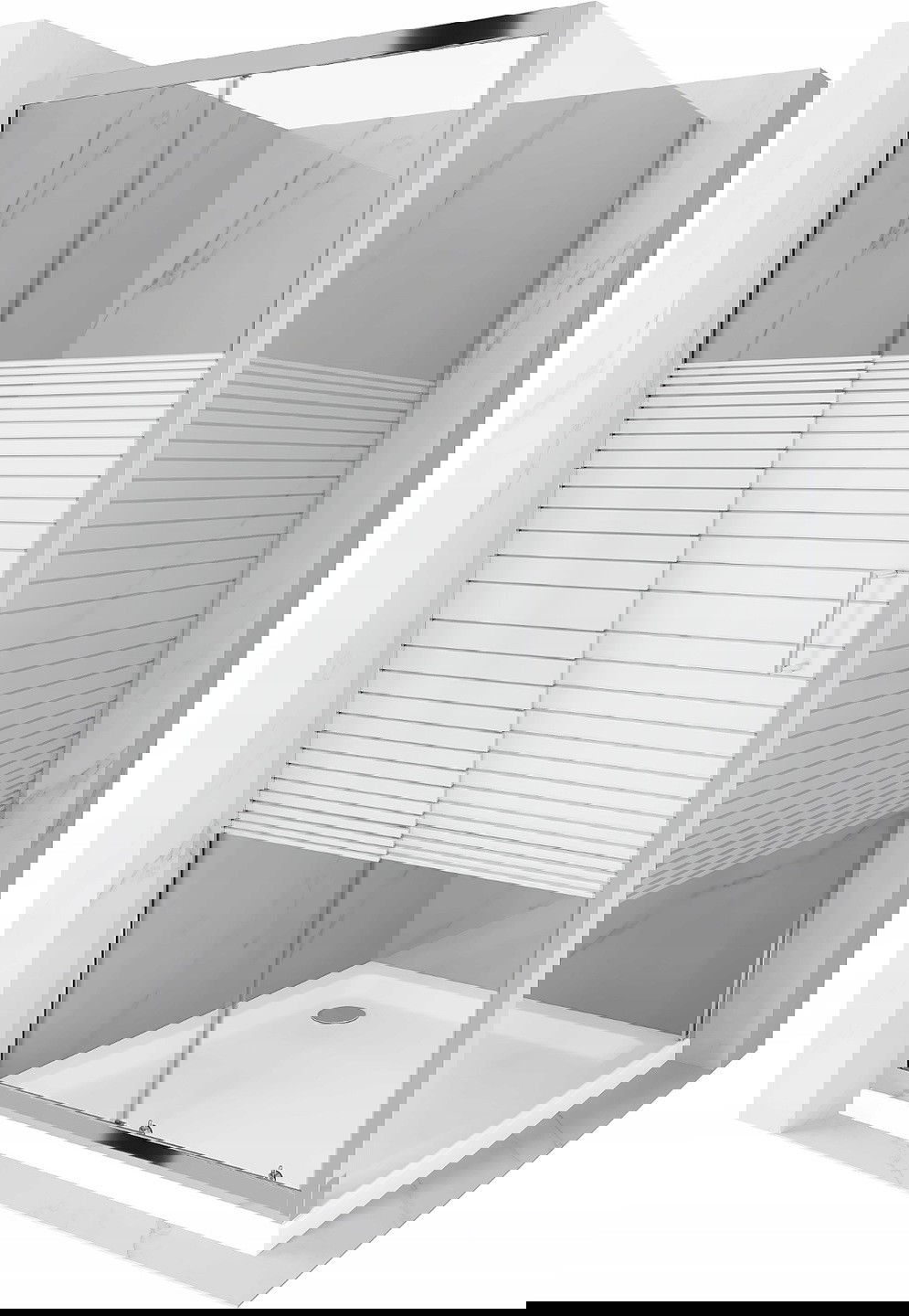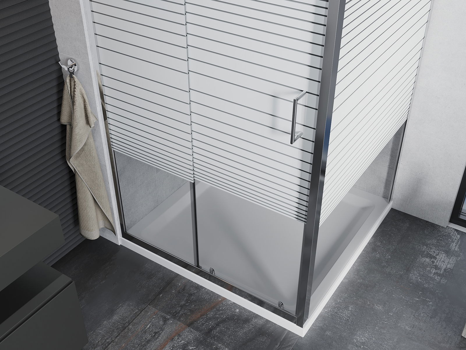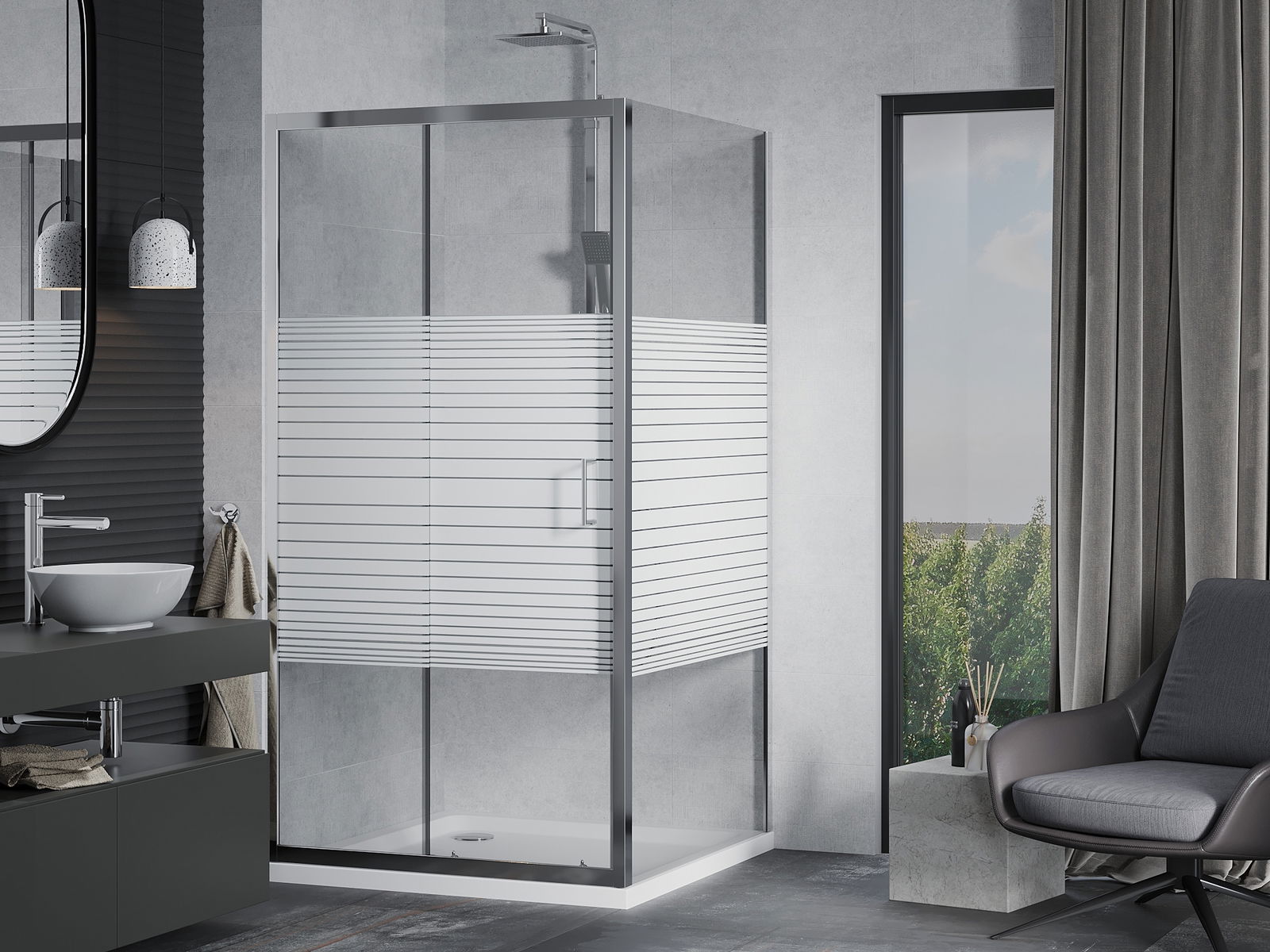 Mexen Apia stumdoma dušo kabina 90 x 90 cm, baltos juostos, chromas + plokščias padėklas - 840-090-090-01-20-4010