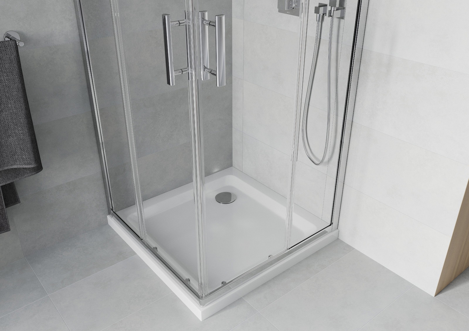 Mexen Rio kvadratinė dušo kabina 80 x 80 cm, permatoma, chromuota + plokščias padėklas, balta - 860-080-080-01-00-4010