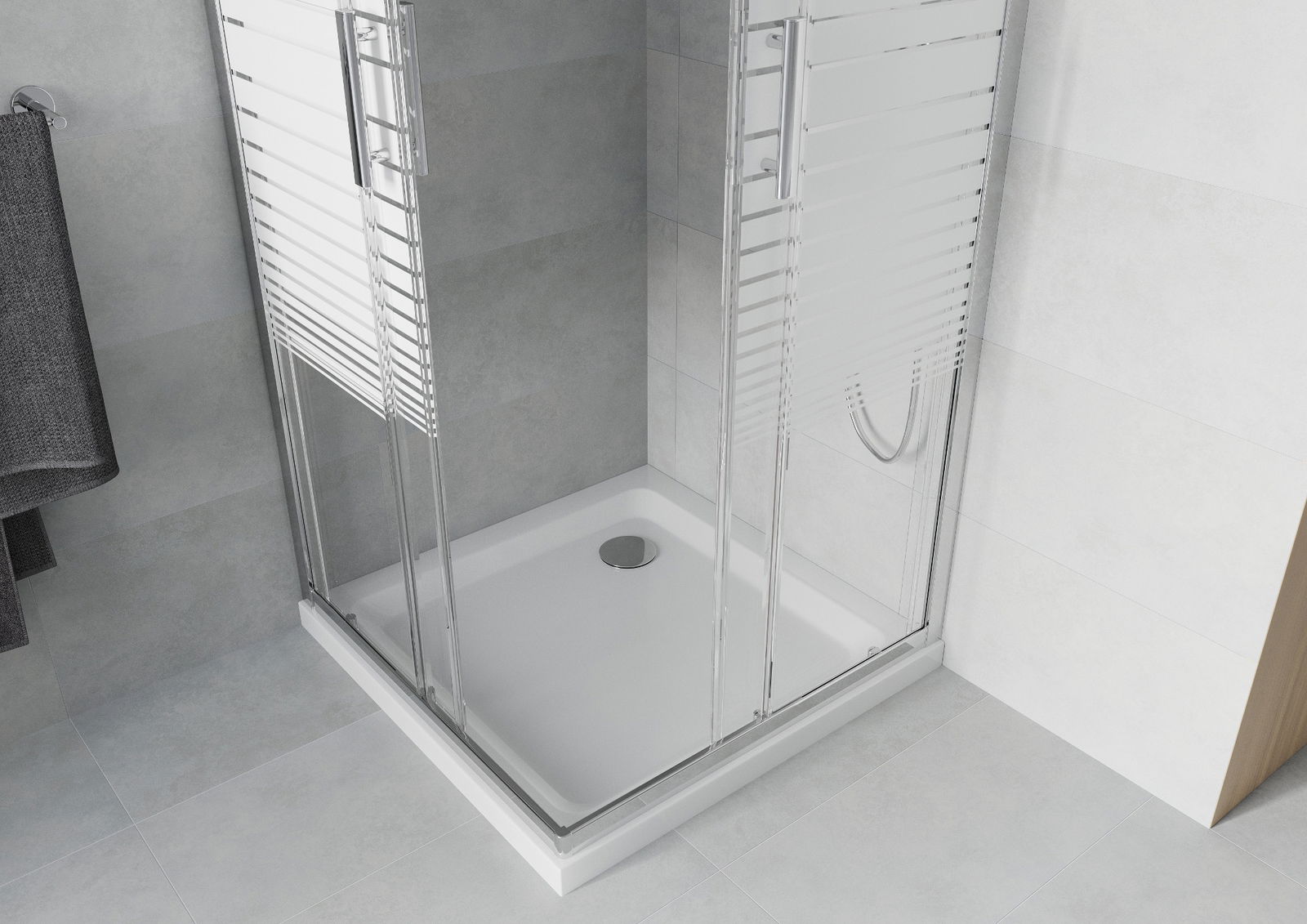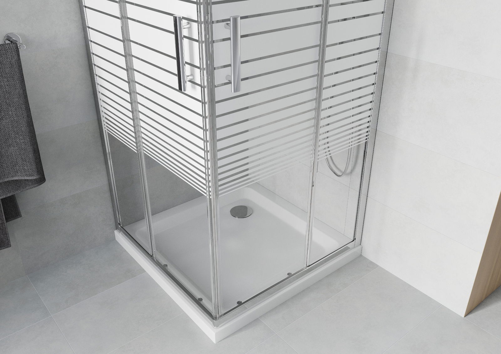 Mexen Rio kvadratinis dušo kabinas 70 x 70 cm, baltos juostos, chromas + plokščias padėklas, baltas - 860-070-070-01-20-4010
