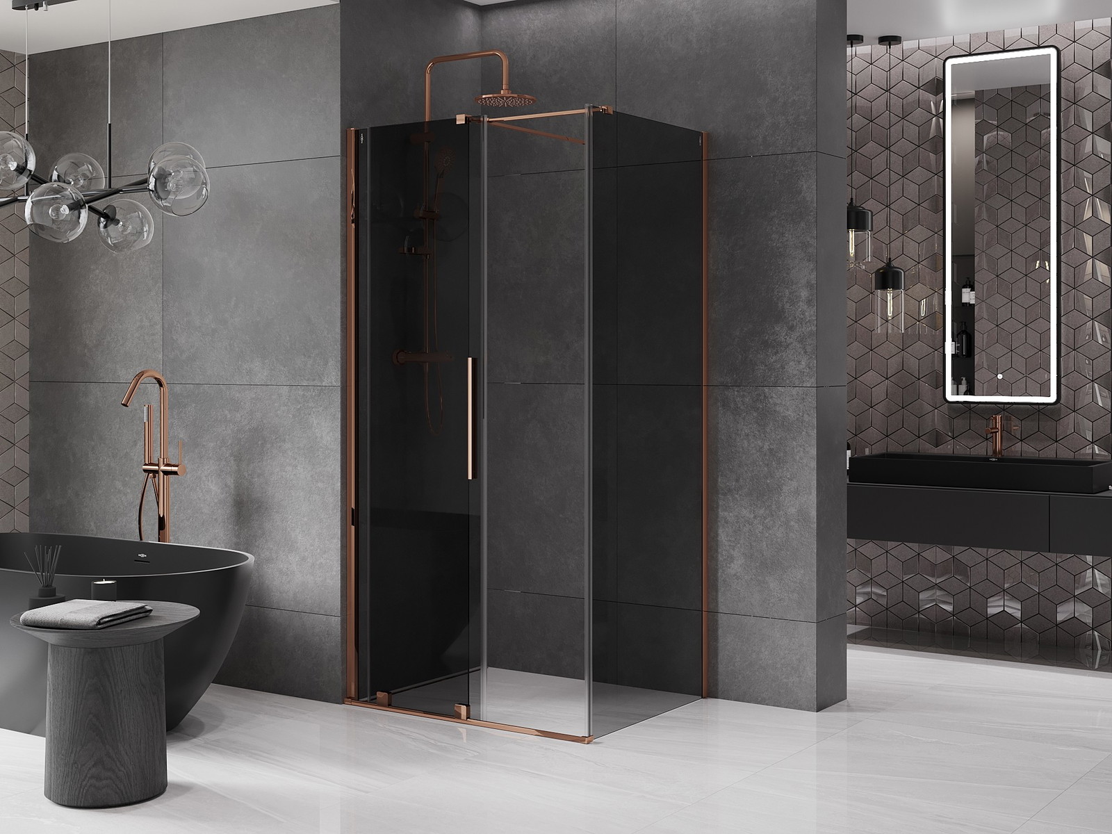 Mexen Velar stumdomas dušo kabinas 100 x 110 cm, grafitas, rožinis auksas - 871-100-110-41-60