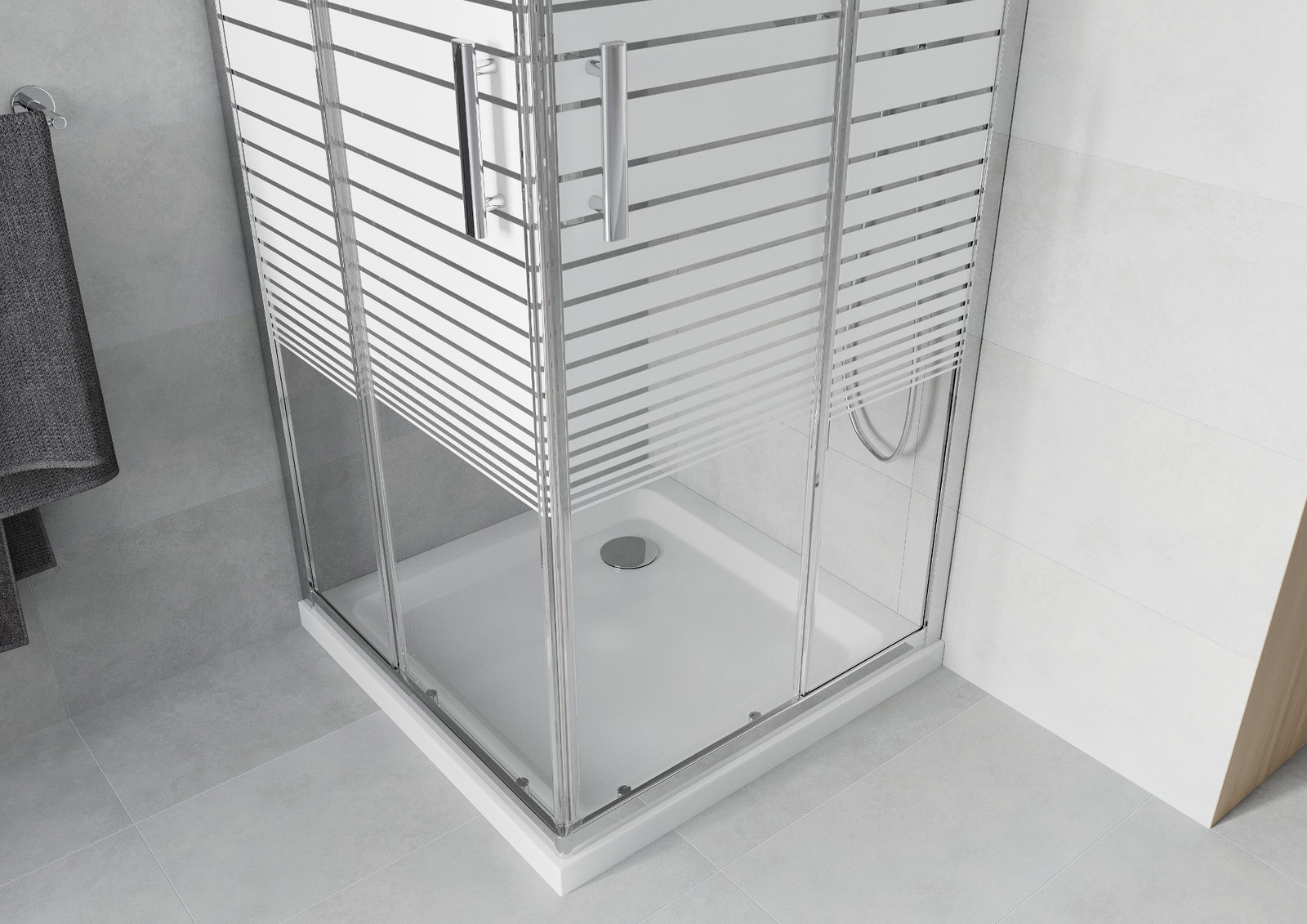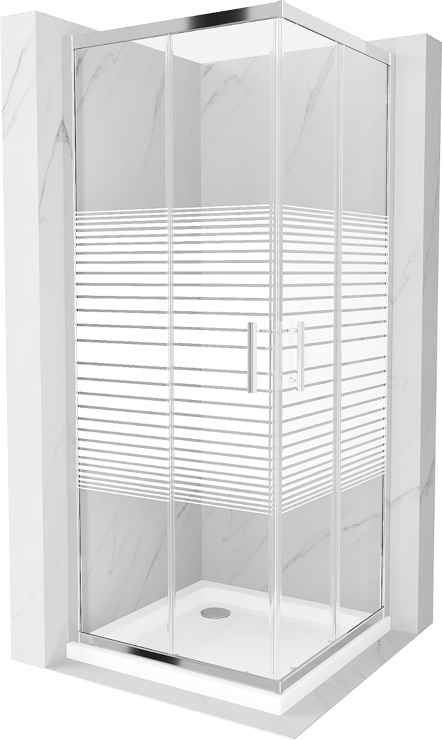Mexen Rio kvadratinė dušo kabina 80 x 80 cm, baltos juostos, chromuota + Flat padėklas, baltas - 860-080-080-01-20-4010