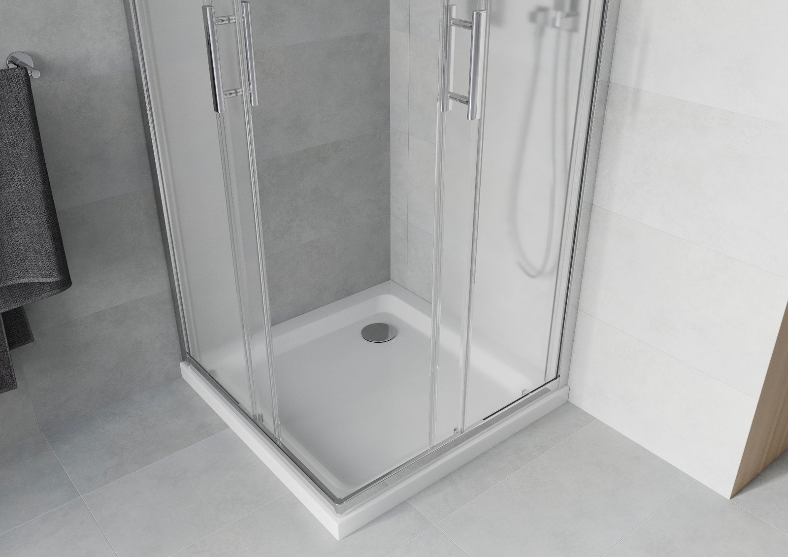 Mexen Rio kvadratinis dušo kabina 70 x 70 cm, matinis, chromas + Flat dušo padėklas, baltas - 860-070-070-01-30-4010