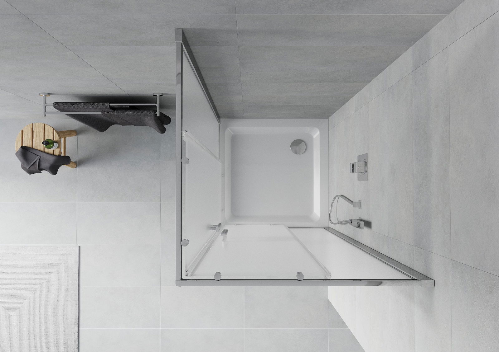Mexen Rio kvadratinė dušo kabina 90 x 90 cm, matinė, chromuota + Flat padėklas, balta - 860-090-090-01-30-4010