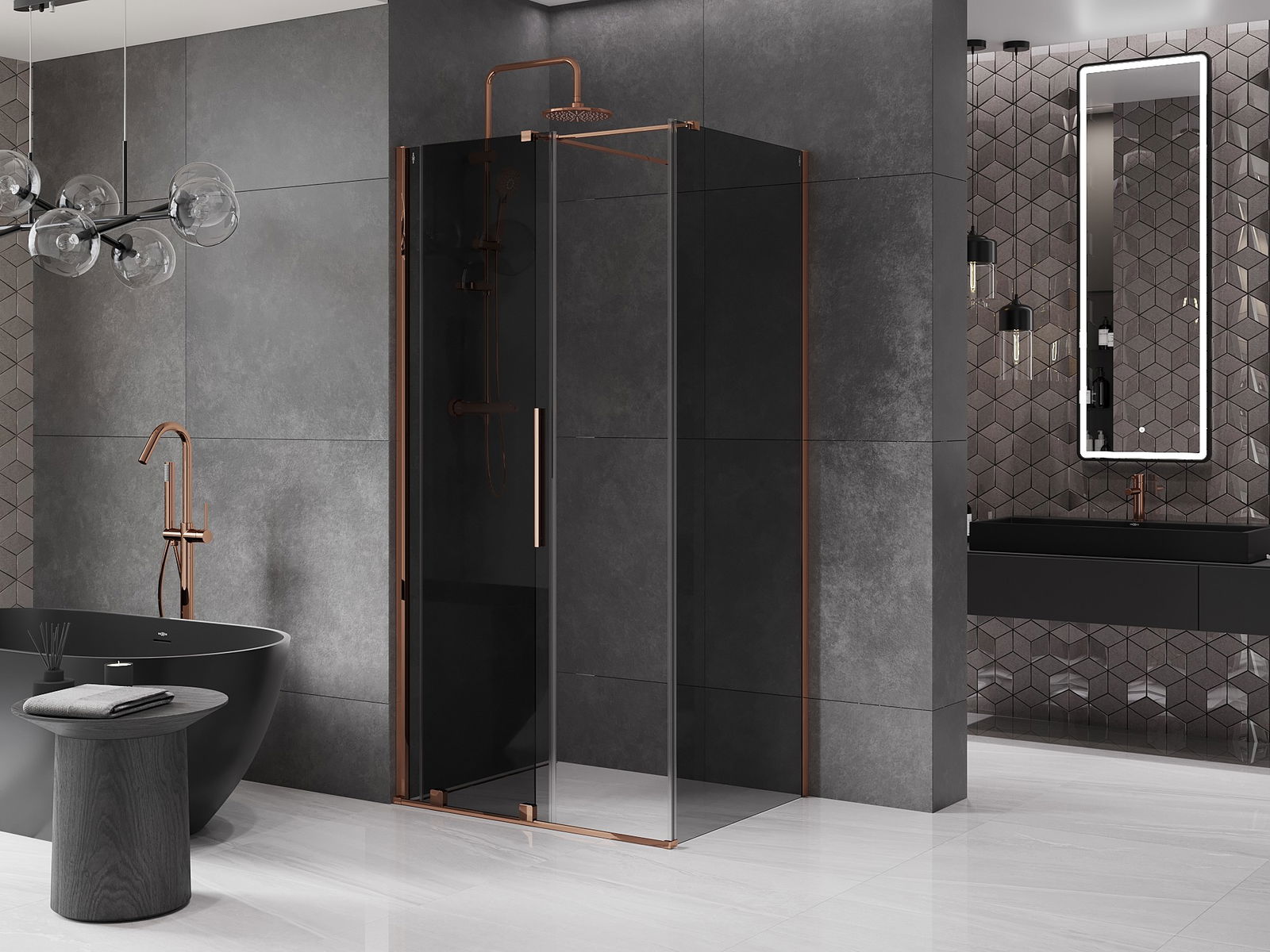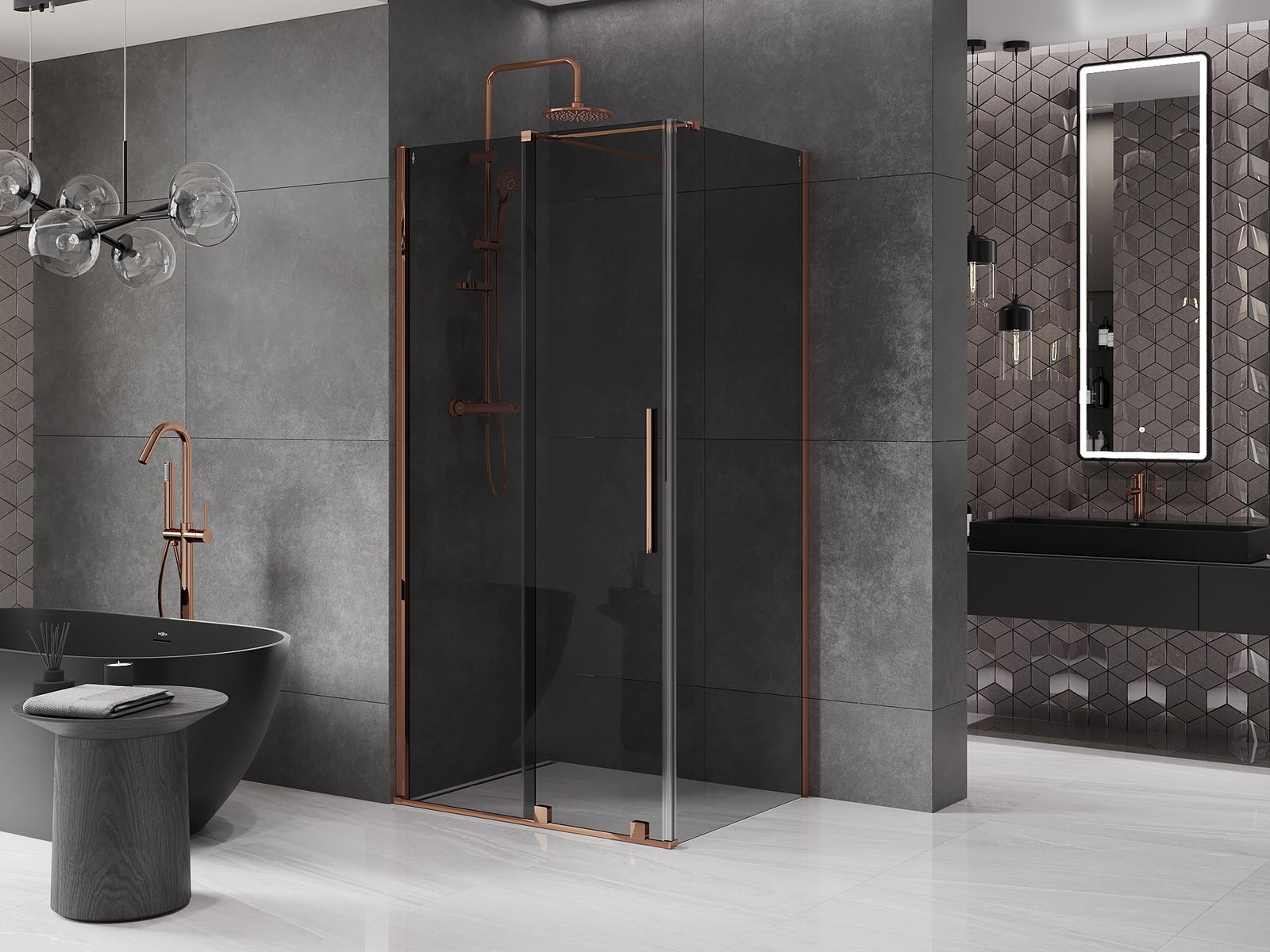 Mexen Velar stumdoma dušo kabina 120 x 110 cm, grafitas, rožinis auksas - 871-120-110-41-60