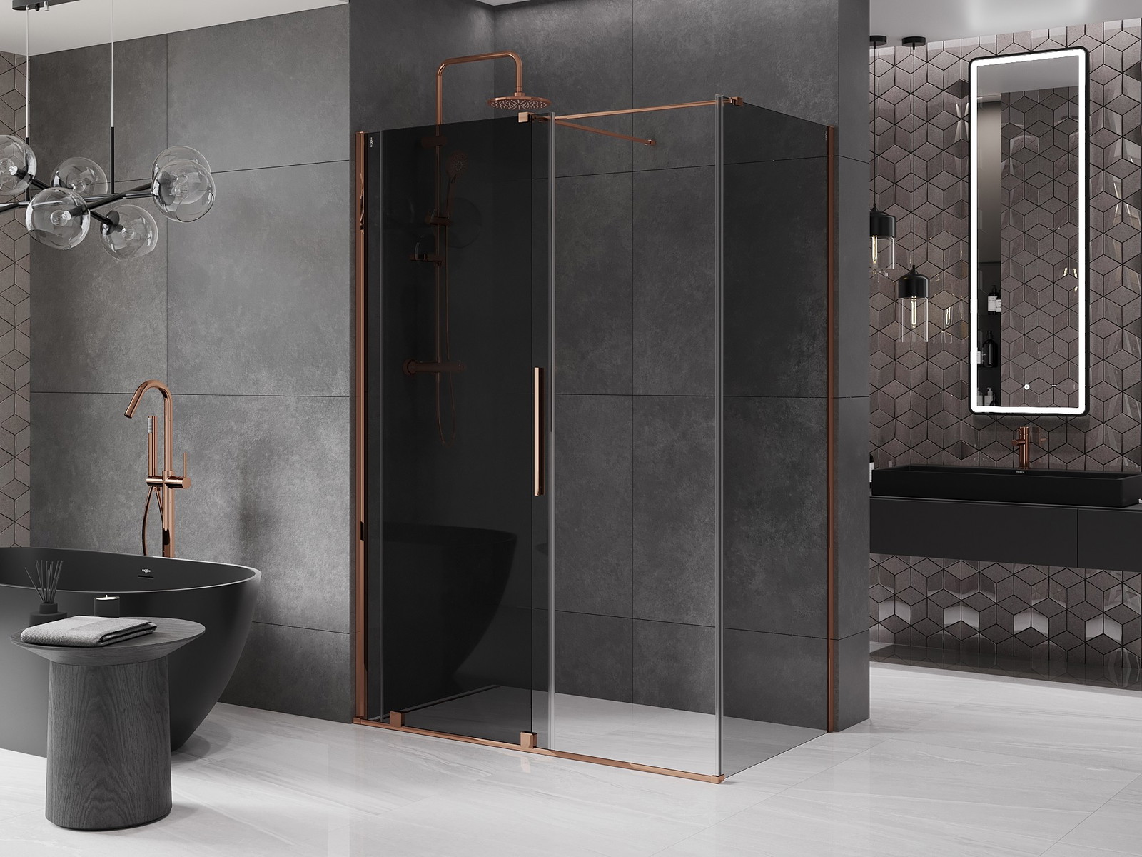 Mexen Velar stumdoma dušo kabina 130 x 70 cm, grafitas, rožinė aukso spalva - 871-130-070-41-60