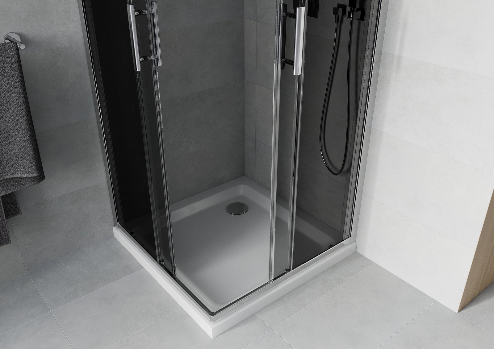 Mexen Rio kvadratinė dušo kabina 90 x 90 cm, grafitas, chromas + padėklas Flat, baltas - 860-090-090-01-40-4010
