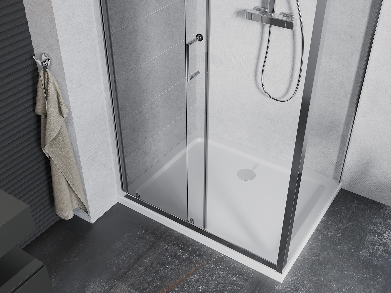 Mexen Apia stiklinė dušo kabina 130 x 100 cm, skaidri, chromuota + Flat dušo padėklas - 840-130-100-01-00-4010