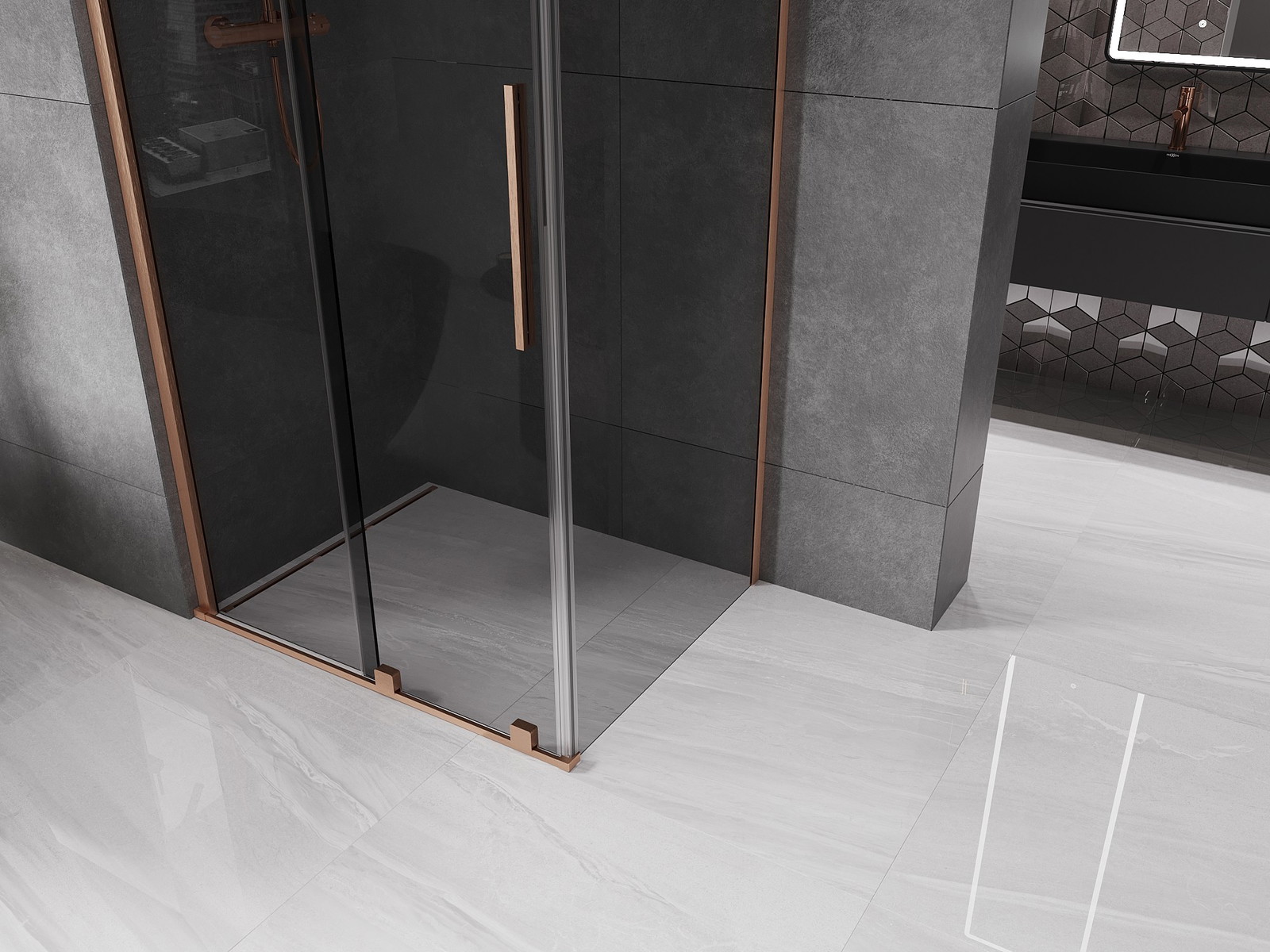 Mexen Velar slankiojama dušo kabina 100 x 110 cm, grafitas, šepečiu valyta varis - 871-100-110-41-65