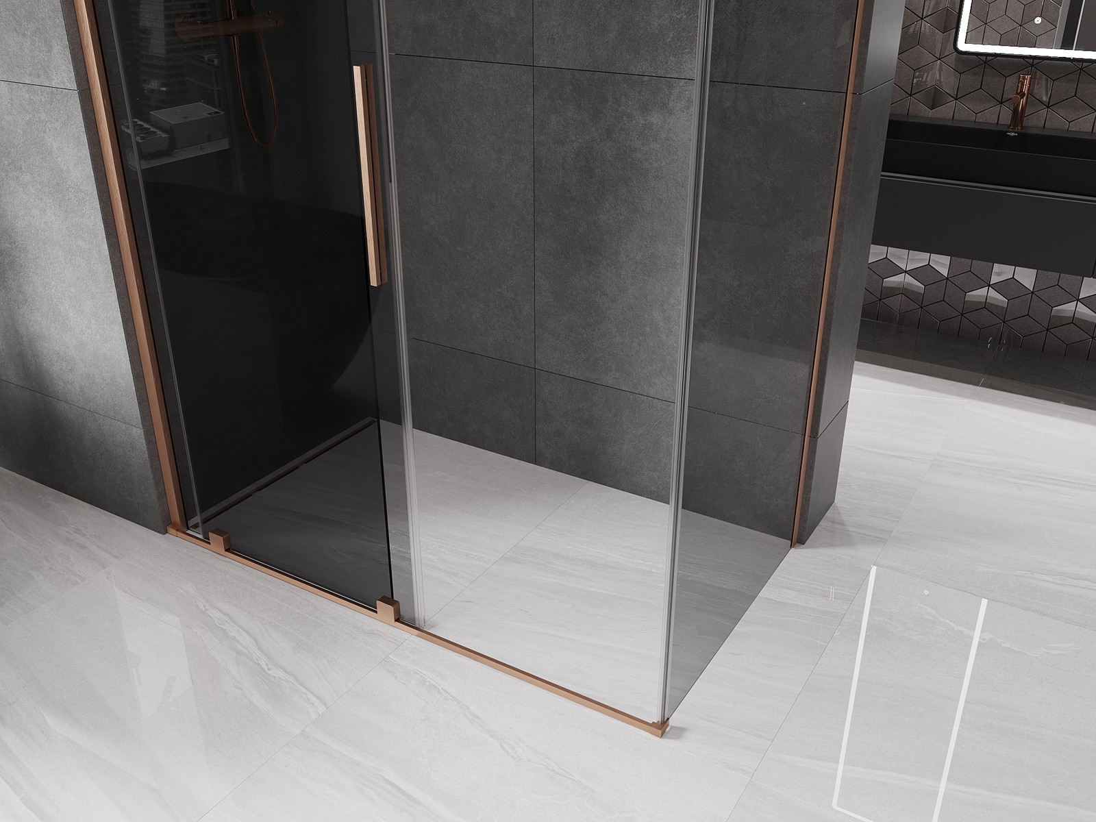 Mexen Velar stumdomas dušo kabinas 150 x 80 cm, grafitas, valytu varis - 871-150-080-41-65