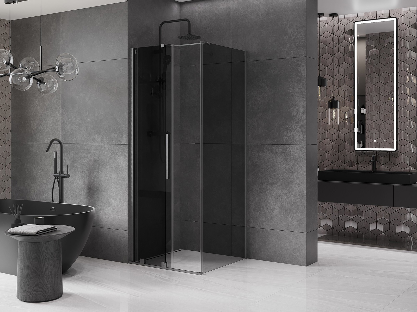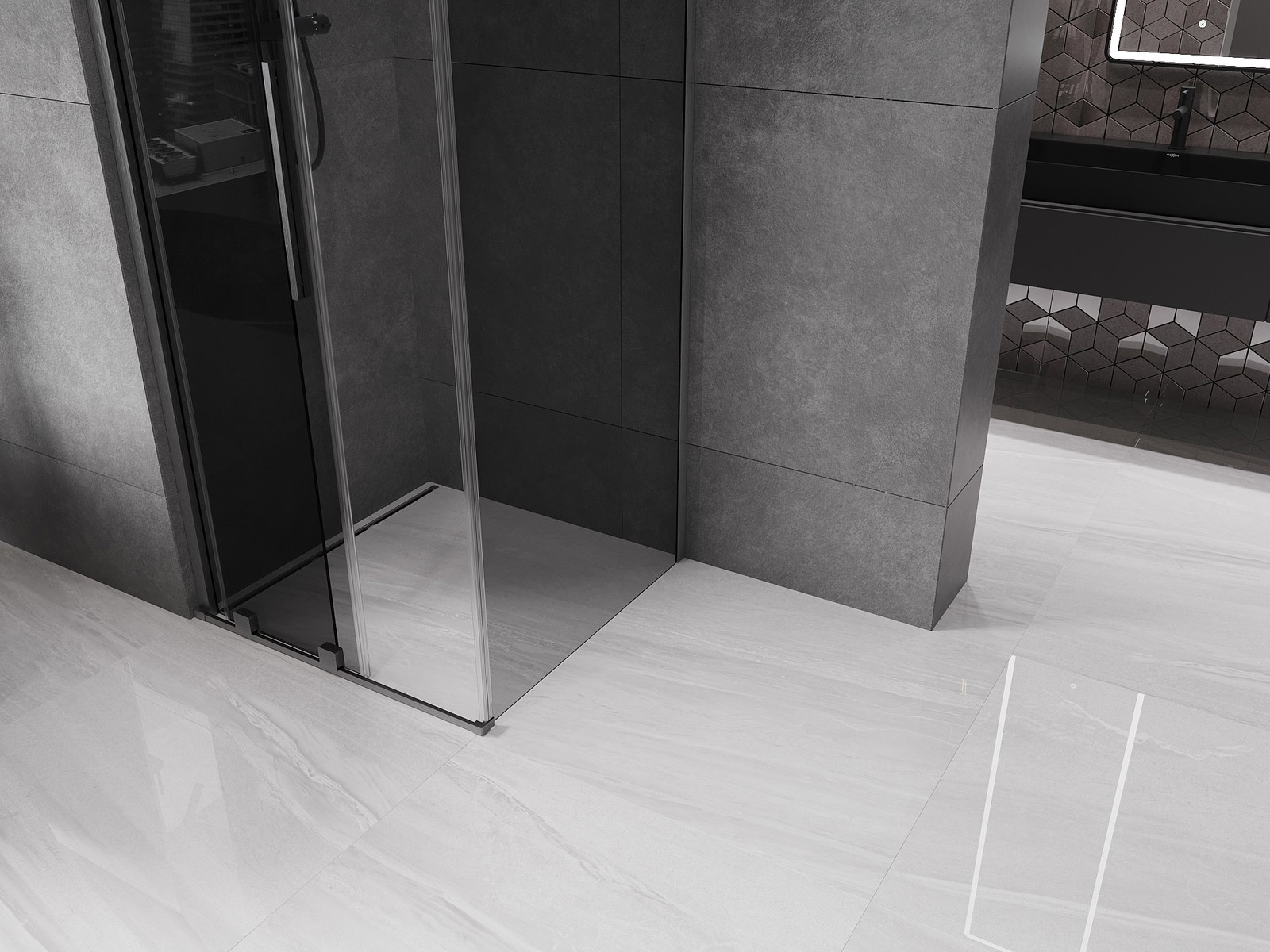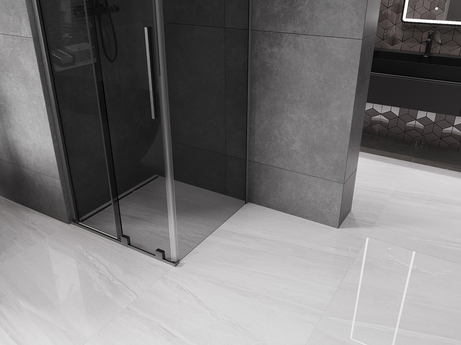 Mexen Velar stumdomos dušo kabina 90 x 90 cm, grafitas, šlifuotas ginklų pilkas - 871-090-090-41-66