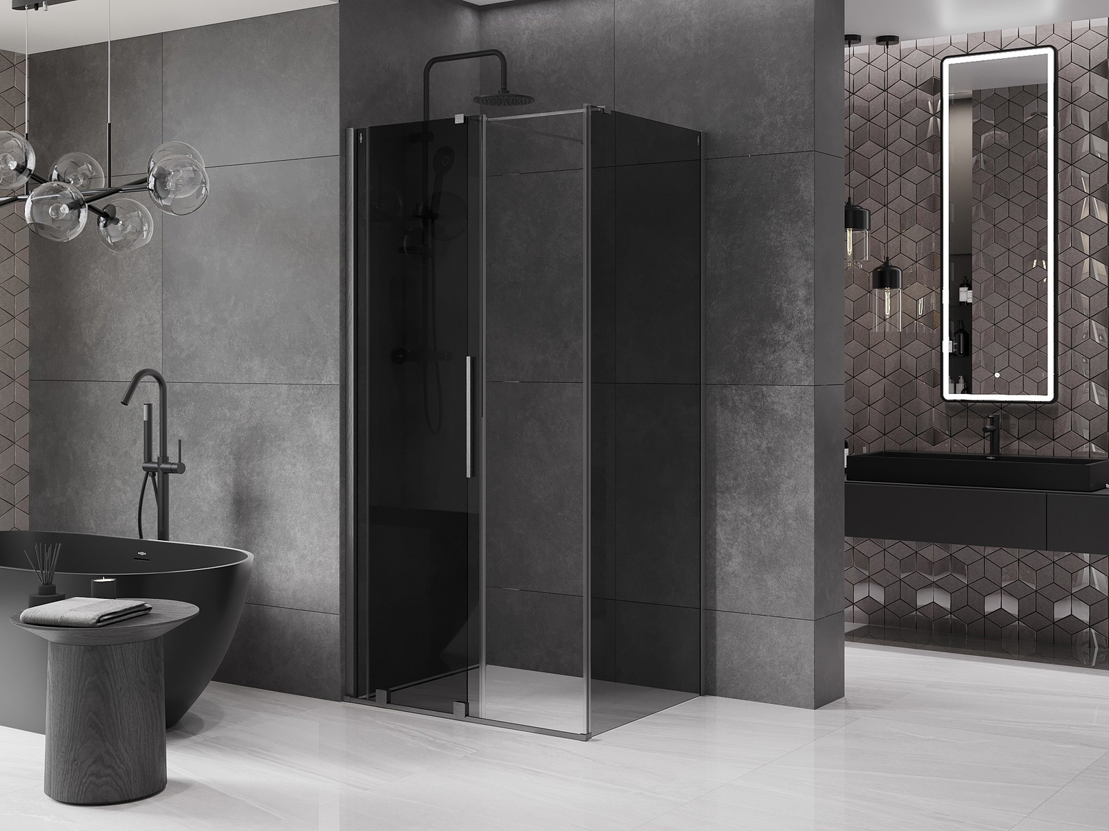 Mexen Velar stumdomas dušo kabina 120 x 85 cm, grafitas, šlifuotas pistoletų pilkas - 871-120-085-41-66