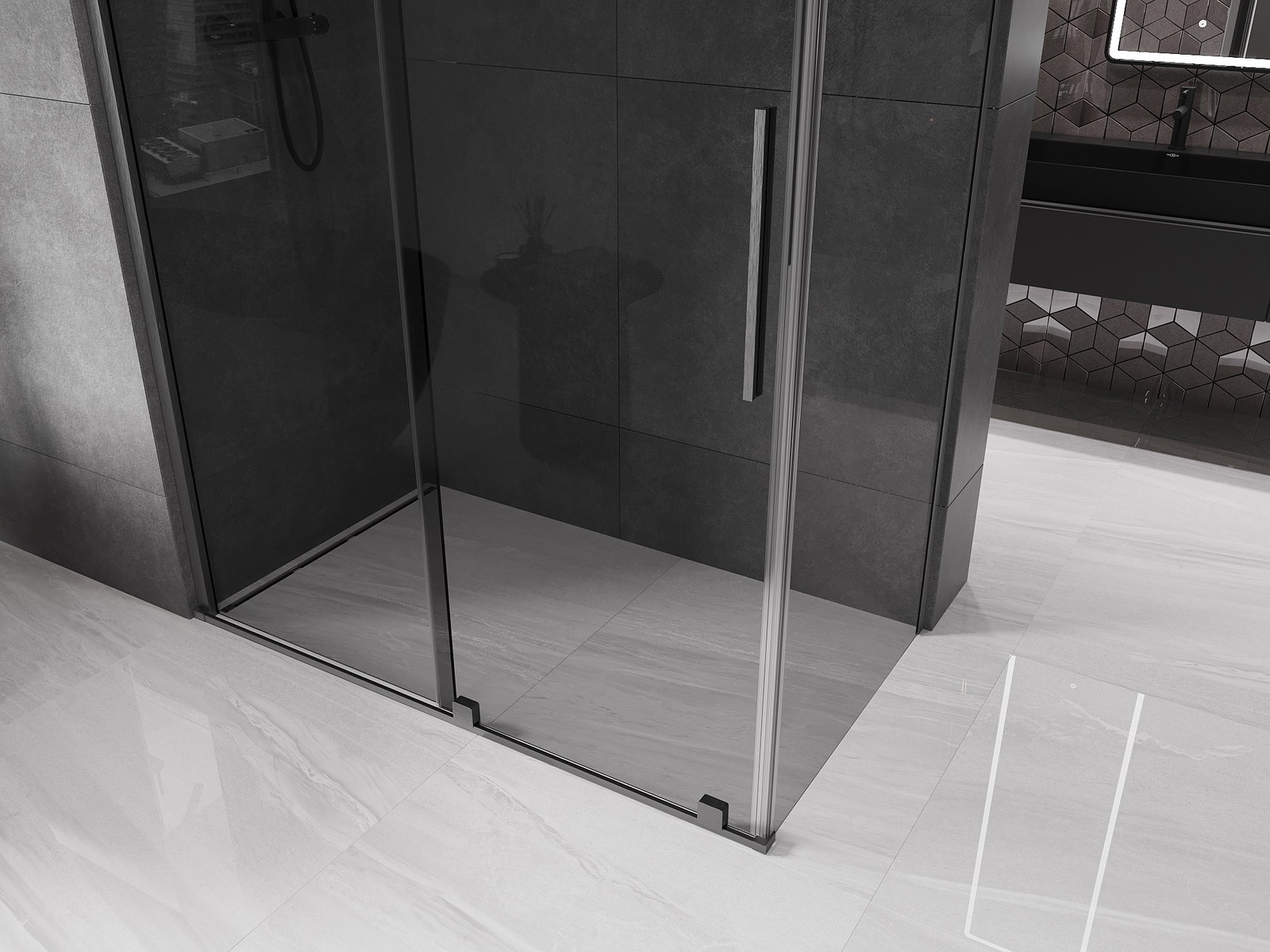 Mexen Velar stumdomos dušo kabina 160 x 80 cm, grafitas, šukuoto plieno pilka spalva - 871-160-080-41-66