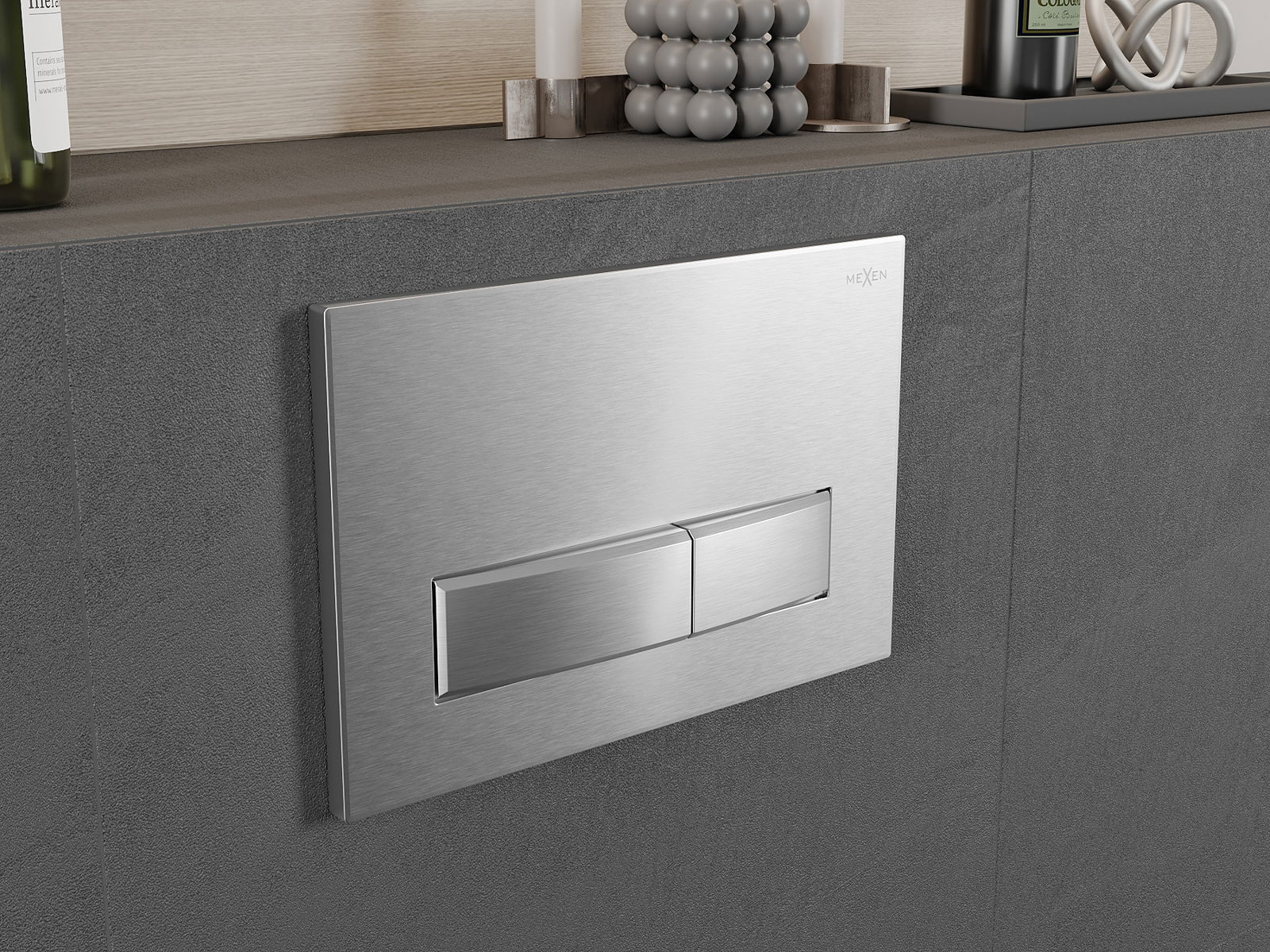 Mygtukas tinka rėmui iš „Mexen Fenix Slim“ serijos, kurioje galima įdiegti iš priekio. Populiarus ir praktiškas sprendimas, ypač vonios kambariuose, kur patogesnis yra prieiga prie mygtuko iš priekio.