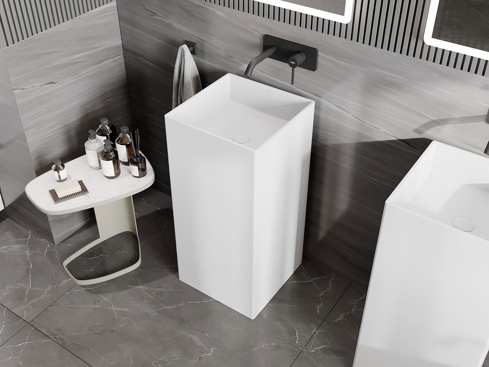 Mexen Xola-1 laisvai pastatomas praustuvas iš konglomerato 40 x 40 cm, baltas matinis - 26594000