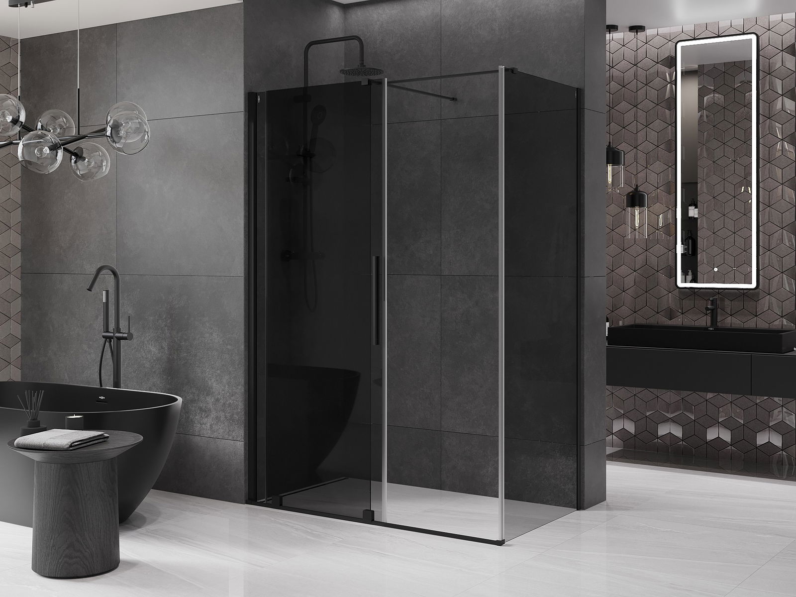 Mexen Velar stumdomas dušo kabina 140 x 85 cm, grafitas, juoda - 871-140-085-41-70