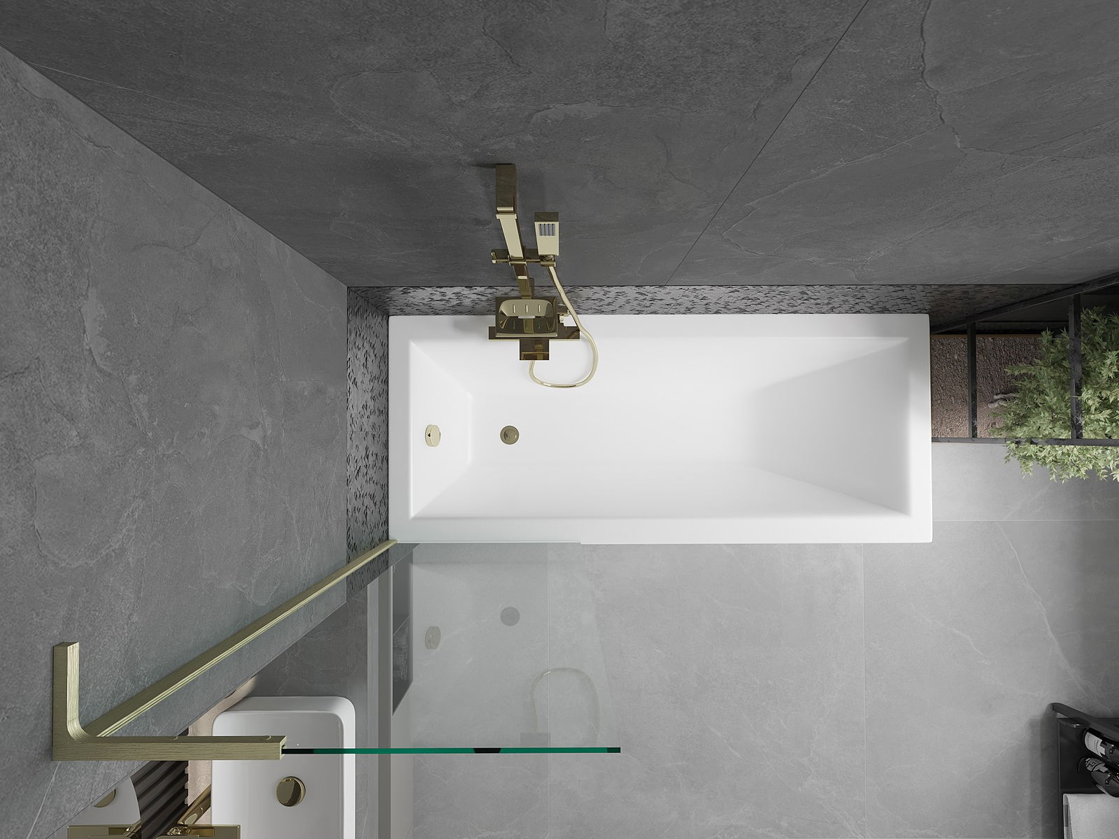 Mexen Next L vonios uždanga su vienu atverčiamu 60 x 150 cm, permatoma, aukso šlifuota - 895-060-000-03-00-55