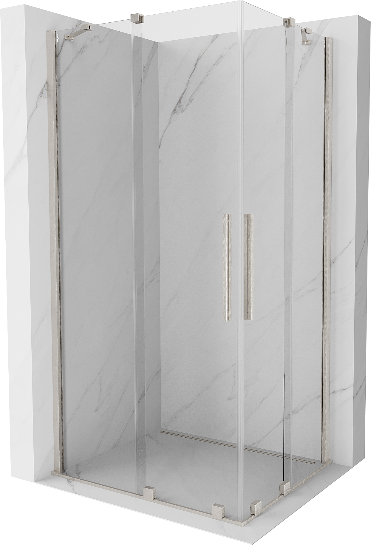 Mexen Velar Duo stumdomoji dušo kabina 100 x 90 cm, permatoma, šlifuotas nikelis - 871-100-090-02-97
