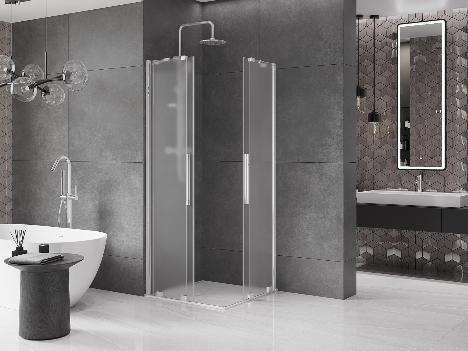 Mexen Velar Dviguba stumdomų durų dušo kabina 80 x 80 cm, matinė, chromas - 871-080-080-32-01