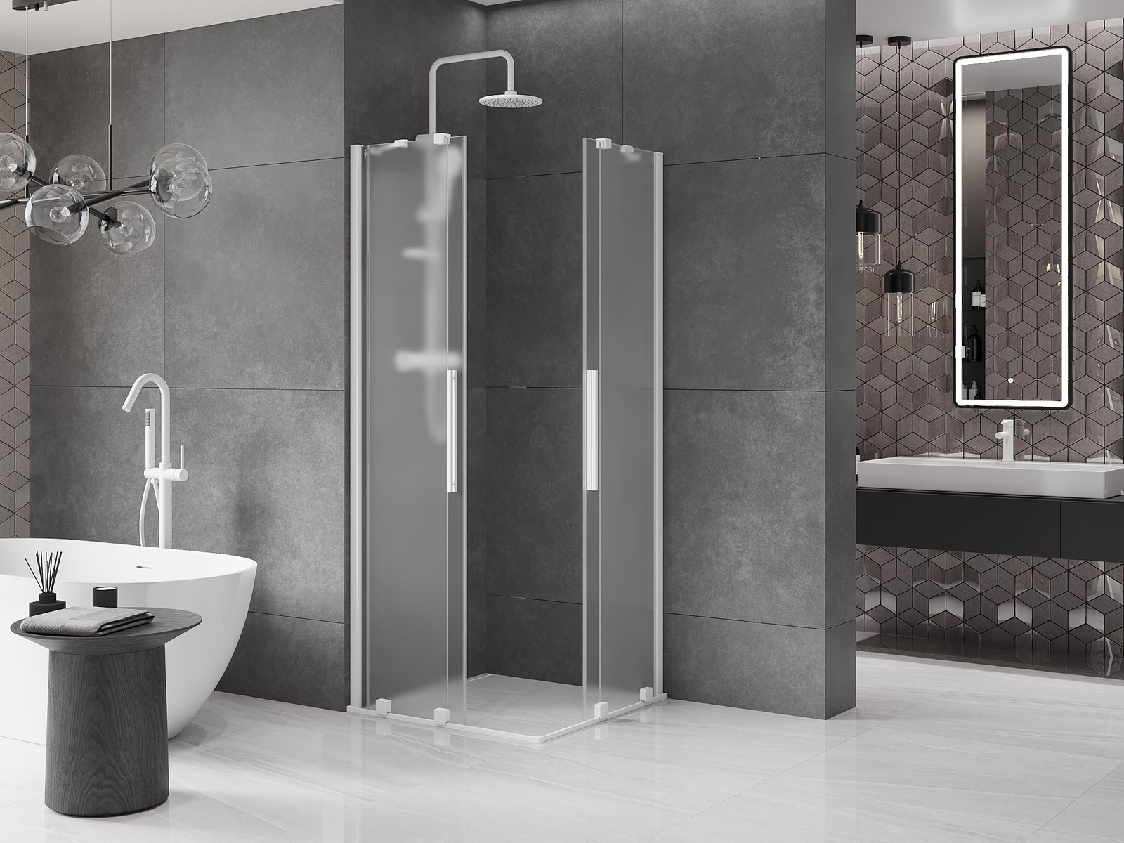 Mexen Velar Dvigubas slankiojančios dušo kabinos 80 x 80 cm, šalna, balta - 871-080-080-32-20