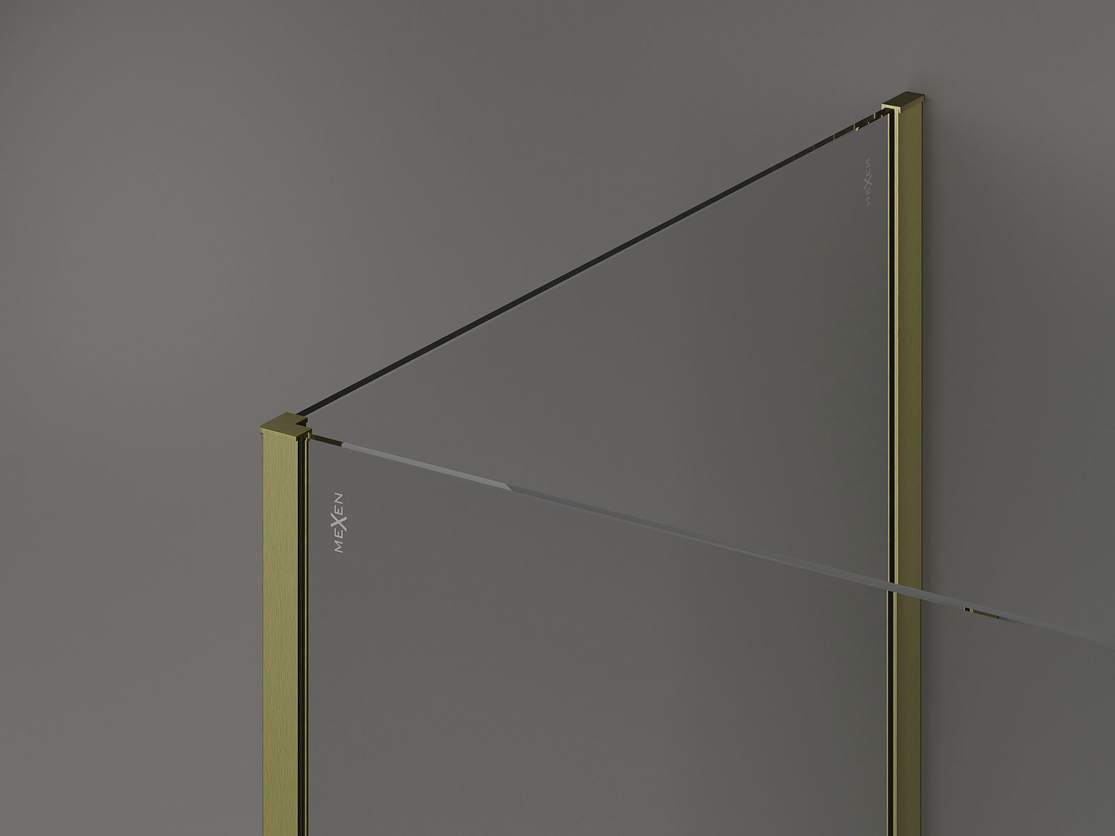 Mexen Kioto dušo sienelė Walk-in 130 x 100 cm, juodas rėmelis, auksinė šlifuota - 800-130-212-55-70-100