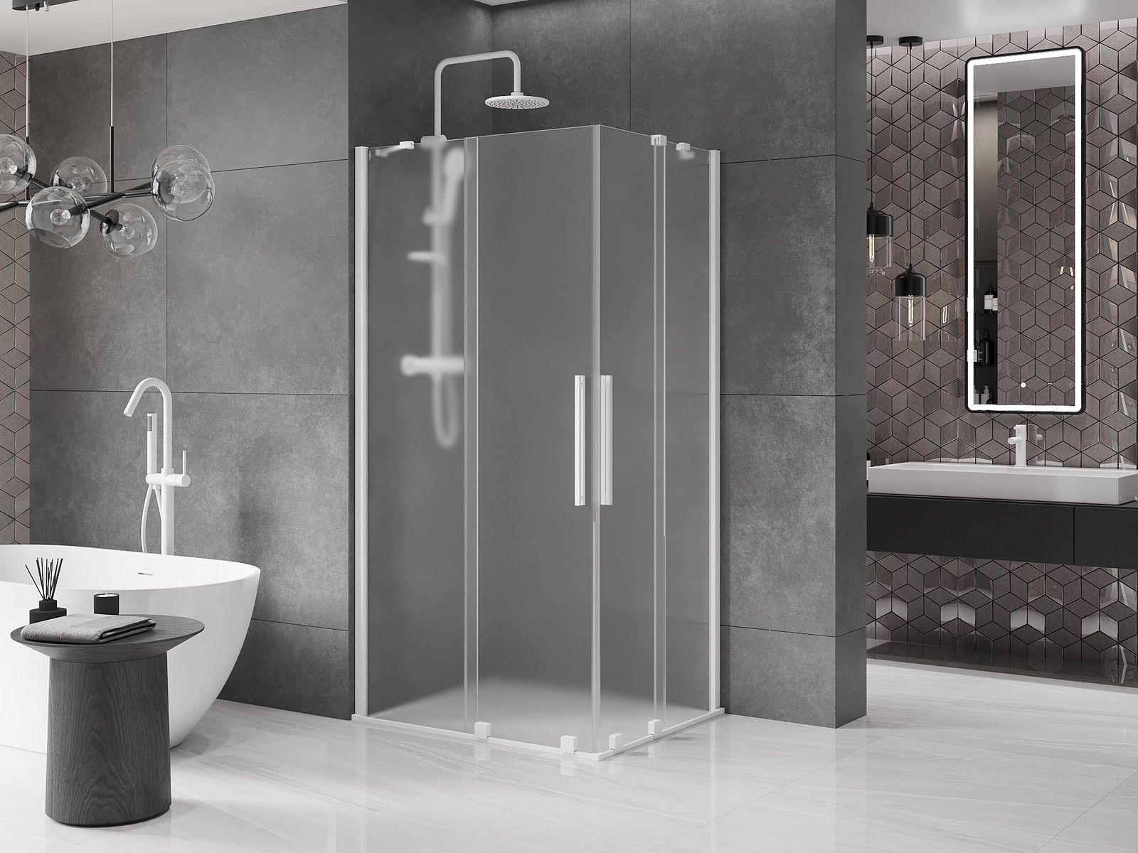 Mexen Velar Dviguba stumdoma dušo kabina 90 x 80 cm, matinė, balta - 871-090-080-32-20