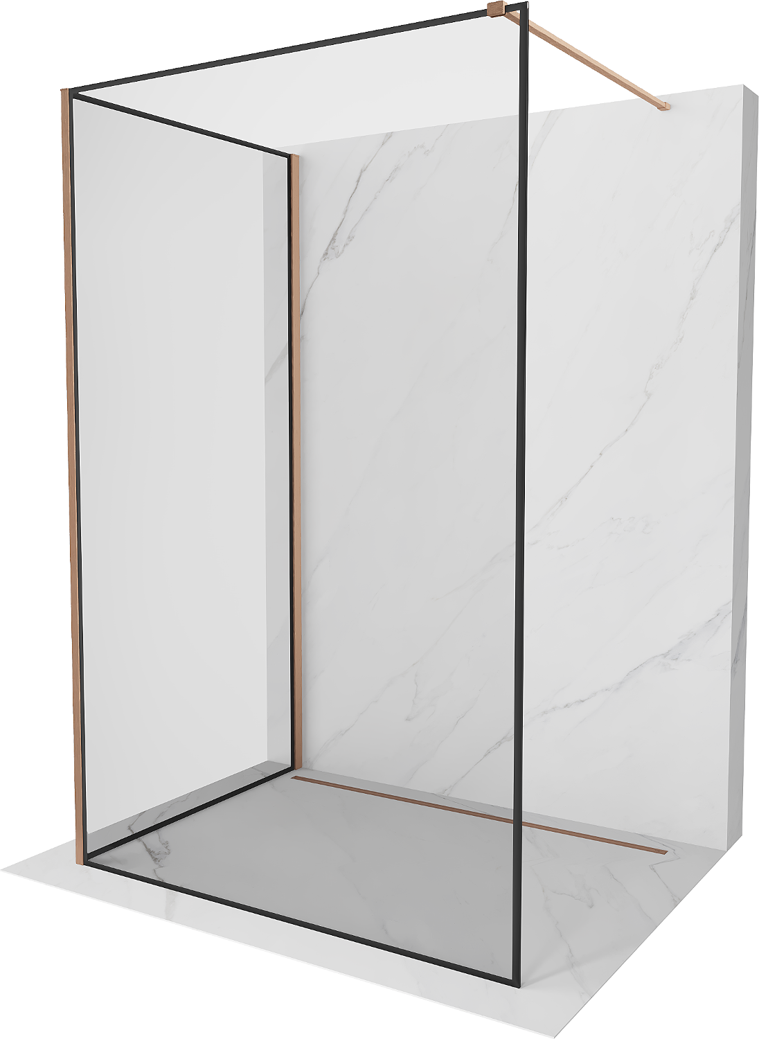 Mexen Kioto dušo sienelė Walk-in 110 x 90 cm, juoda rėmelė, šlifuota varis - 800-110-212-65-70-090
