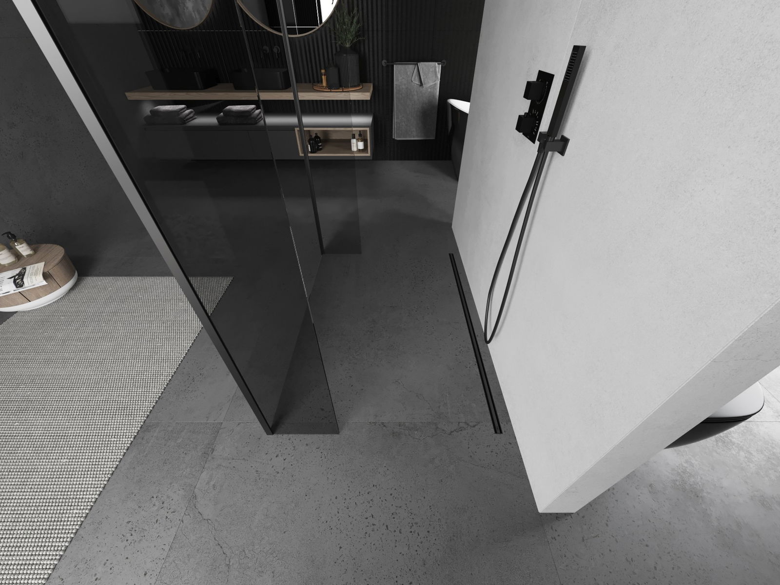 Mexen Kioto laisvai stovinti dušo sienelė 120 x 30 x 30 cm, permatoma, tamsus metalas - 800-120-030-222-95-00-030