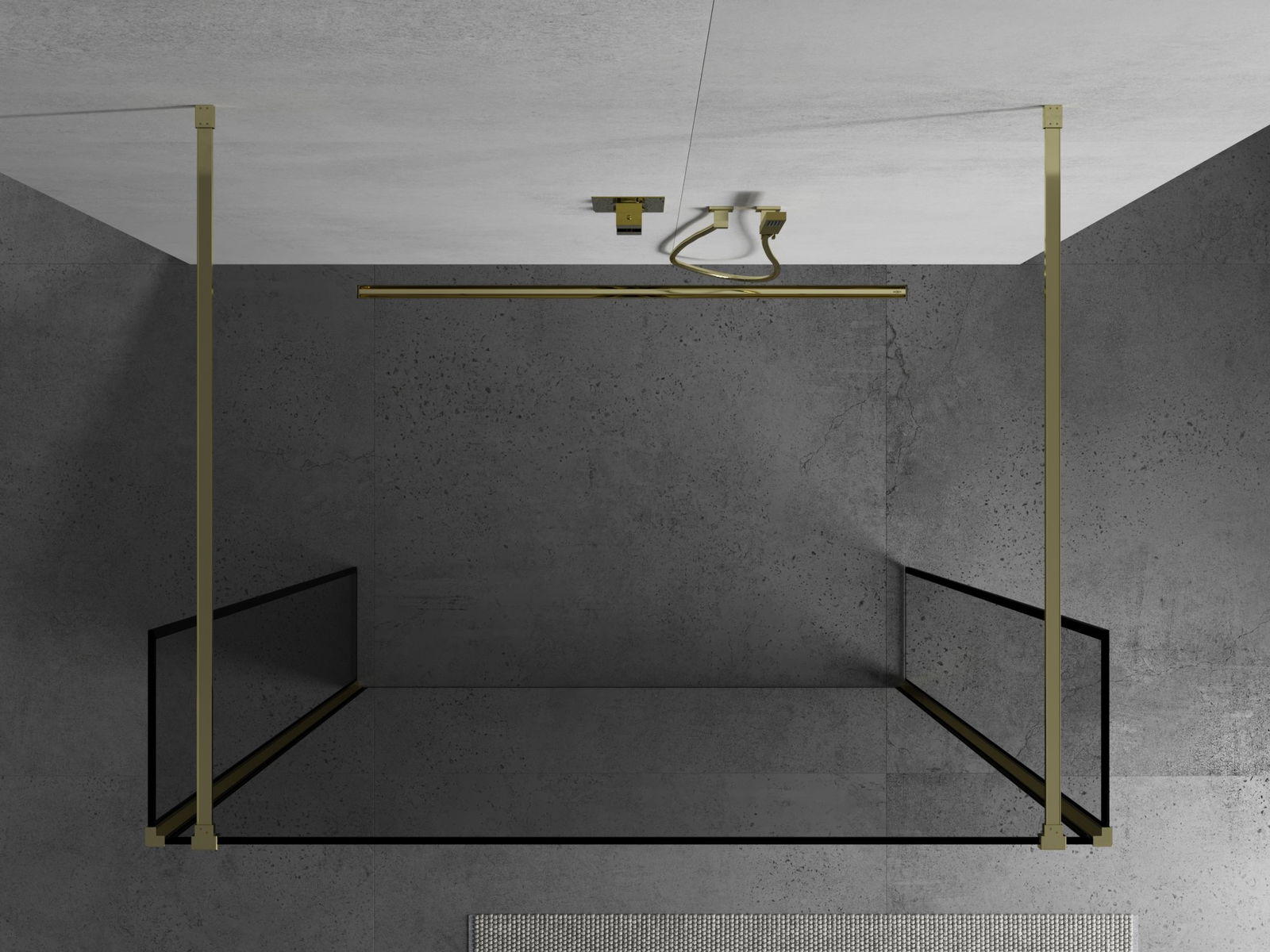Mexen Kioto laisvai stovinti dušo siena 140 x 30 x 30 cm, juodas rėmelis, auksinė - 800-140-030-222-50-70-030