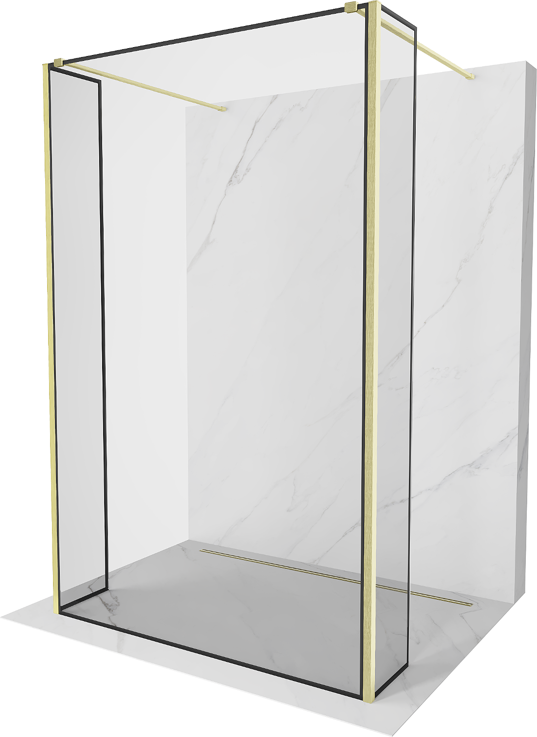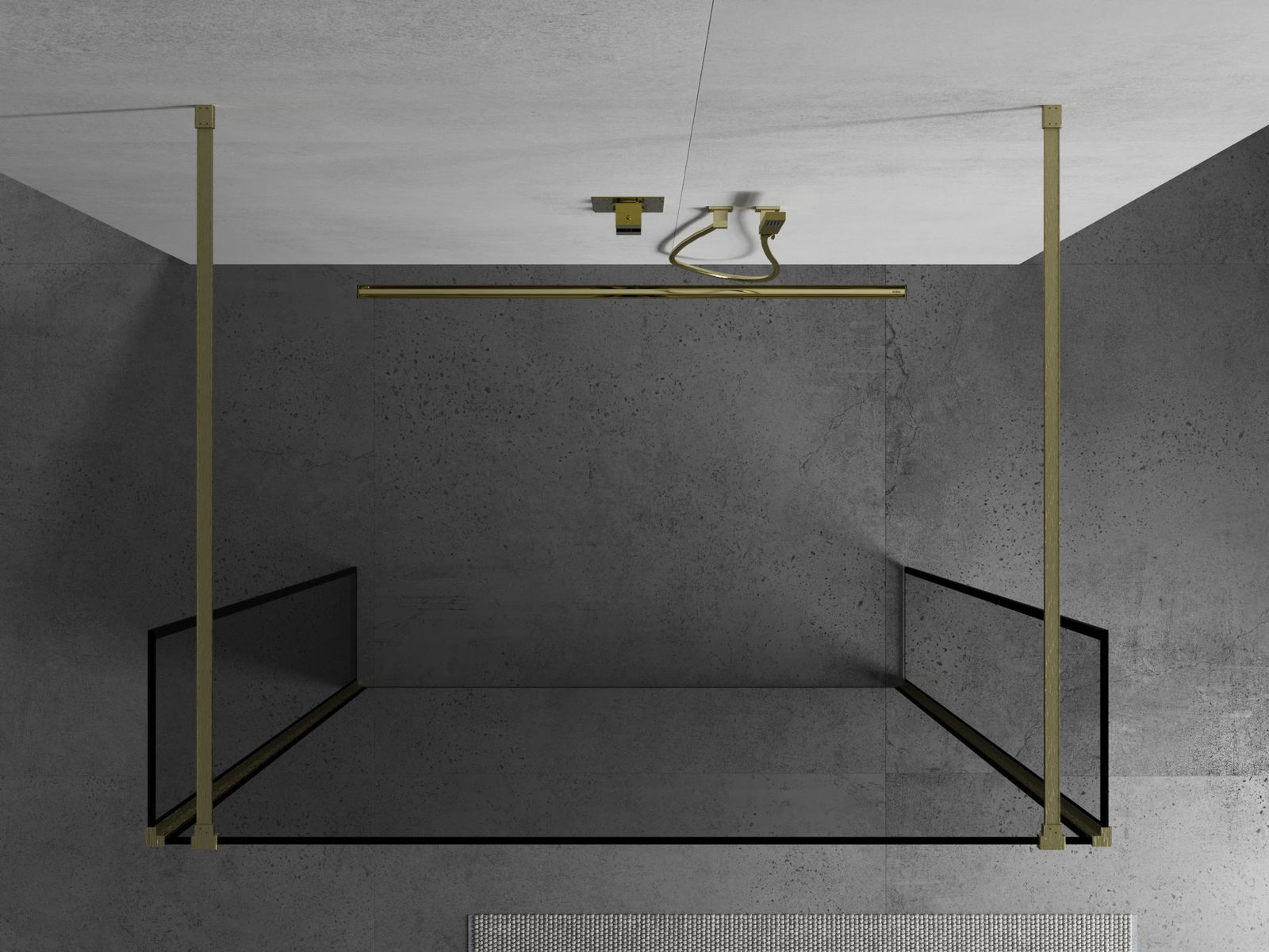 Mexen Kioto laisvai stovinti dušo pertvara 140 x 30 x 30 cm, juodas rėmas, auksinis šepetėlis - 800-140-030-222-55-70-030
