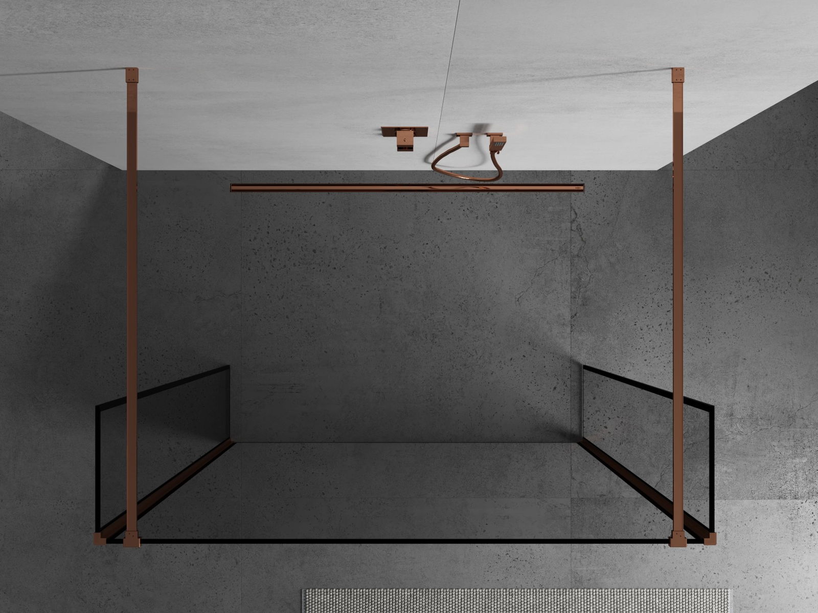 Mexen Kioto laisvai stovinti dušo pertvara 150 x 30 x 30 cm, juodas rėmelis, rožinis auksas - 800-150-030-222-60-70-030