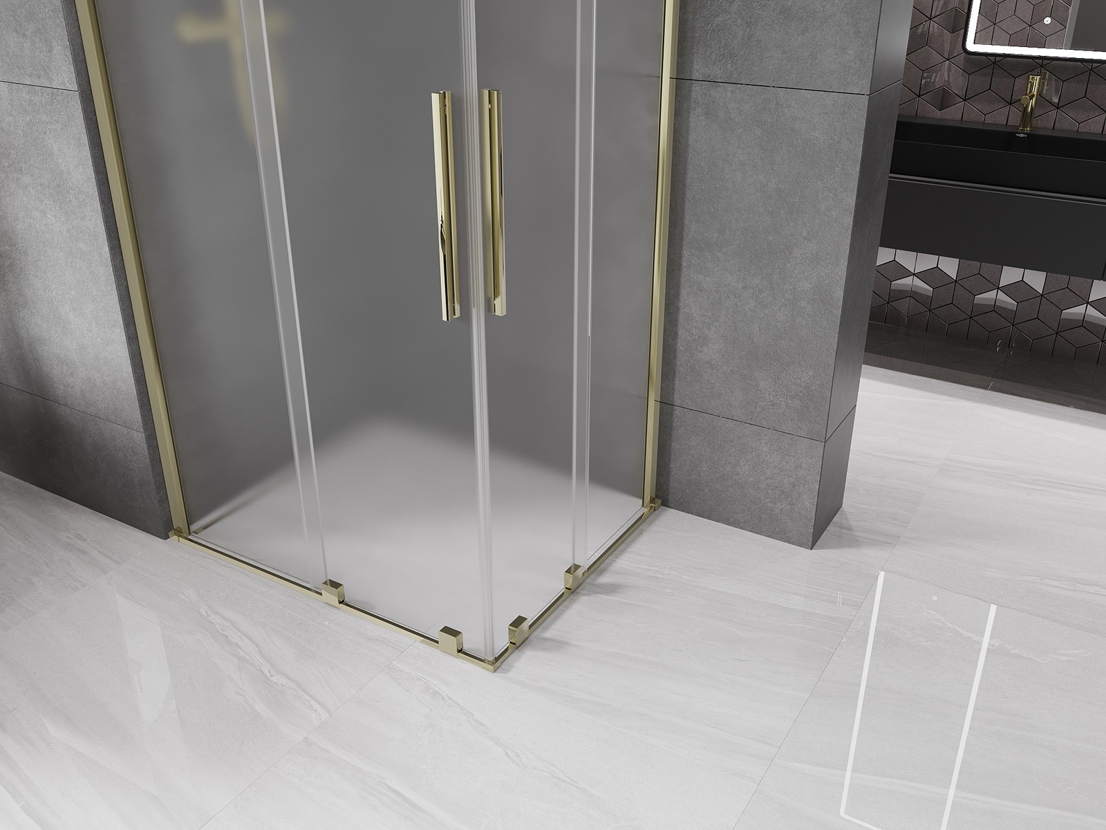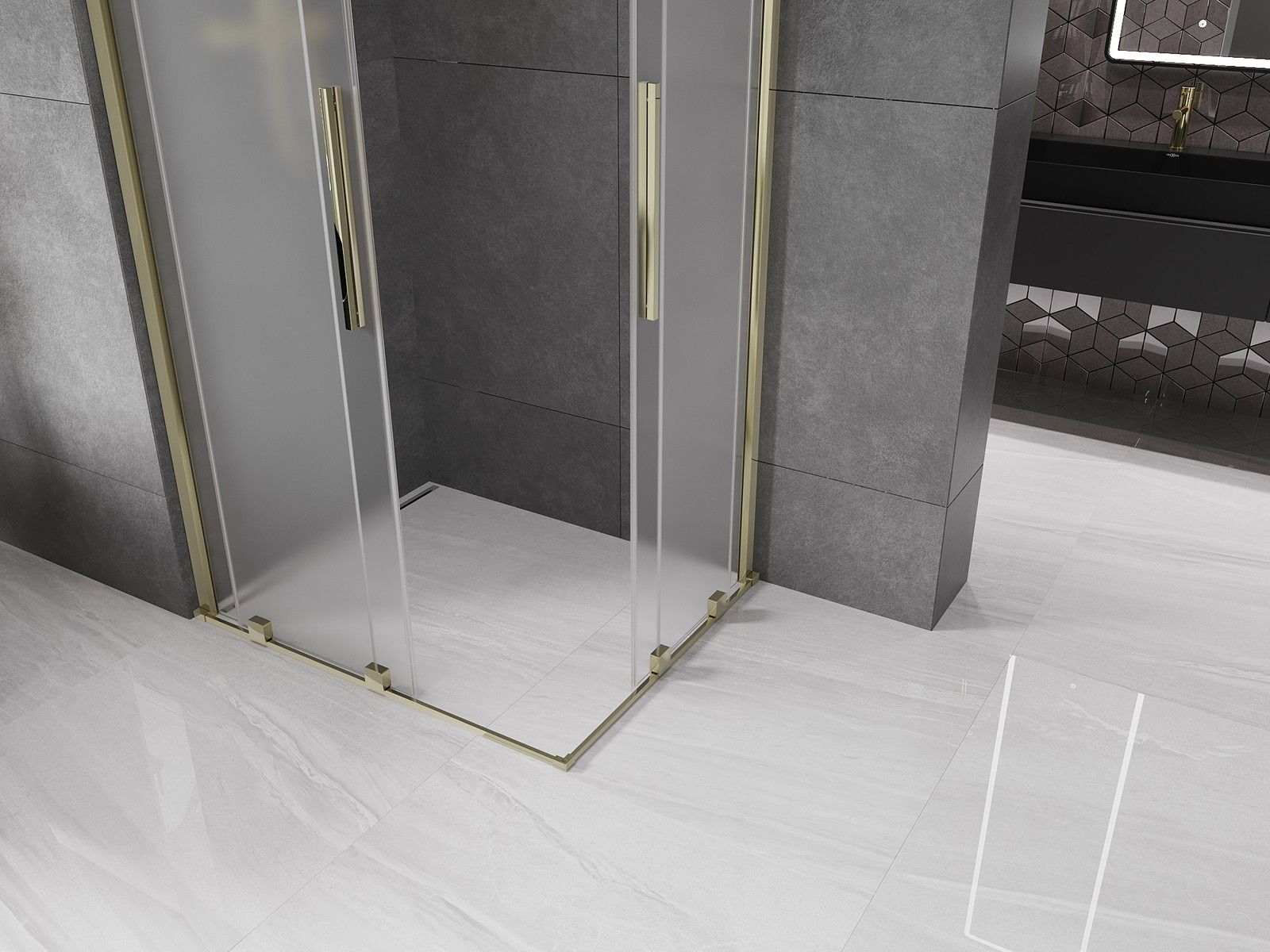 Mexen Velar Dviguba, stumdoma dušo kabina 100 x 90 cm, matinis stiklas, auksinė - 871-100-090-32-50
