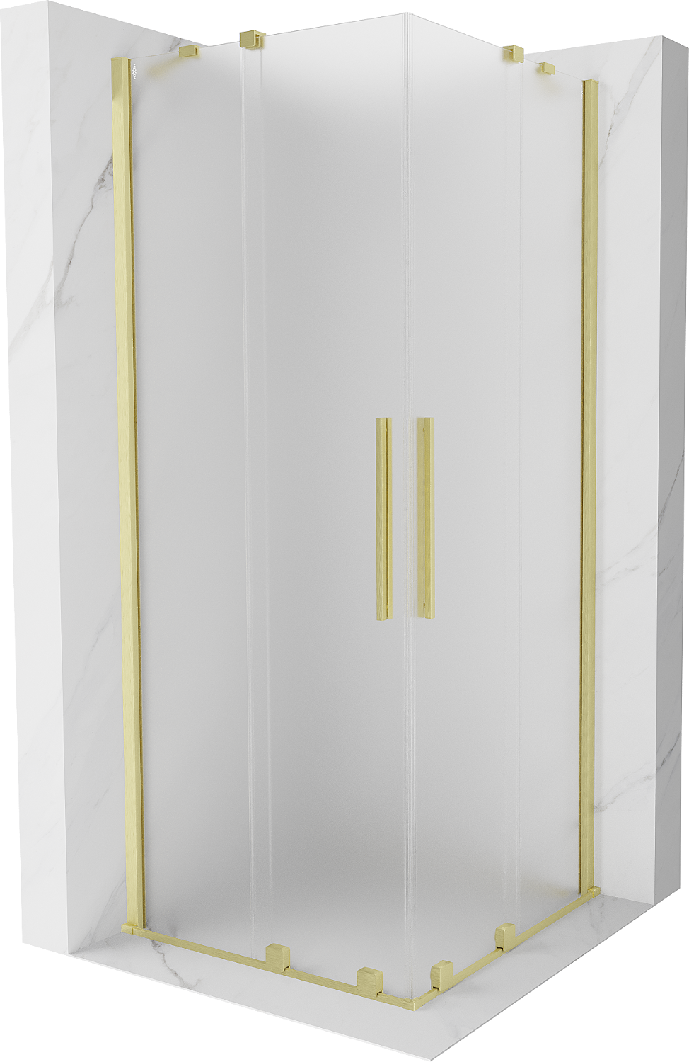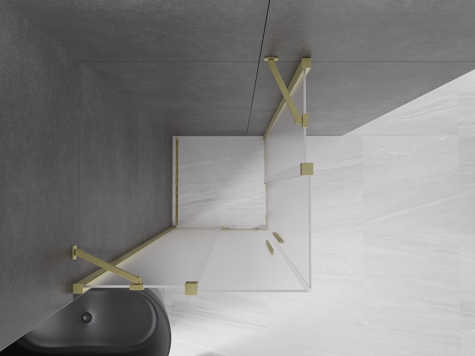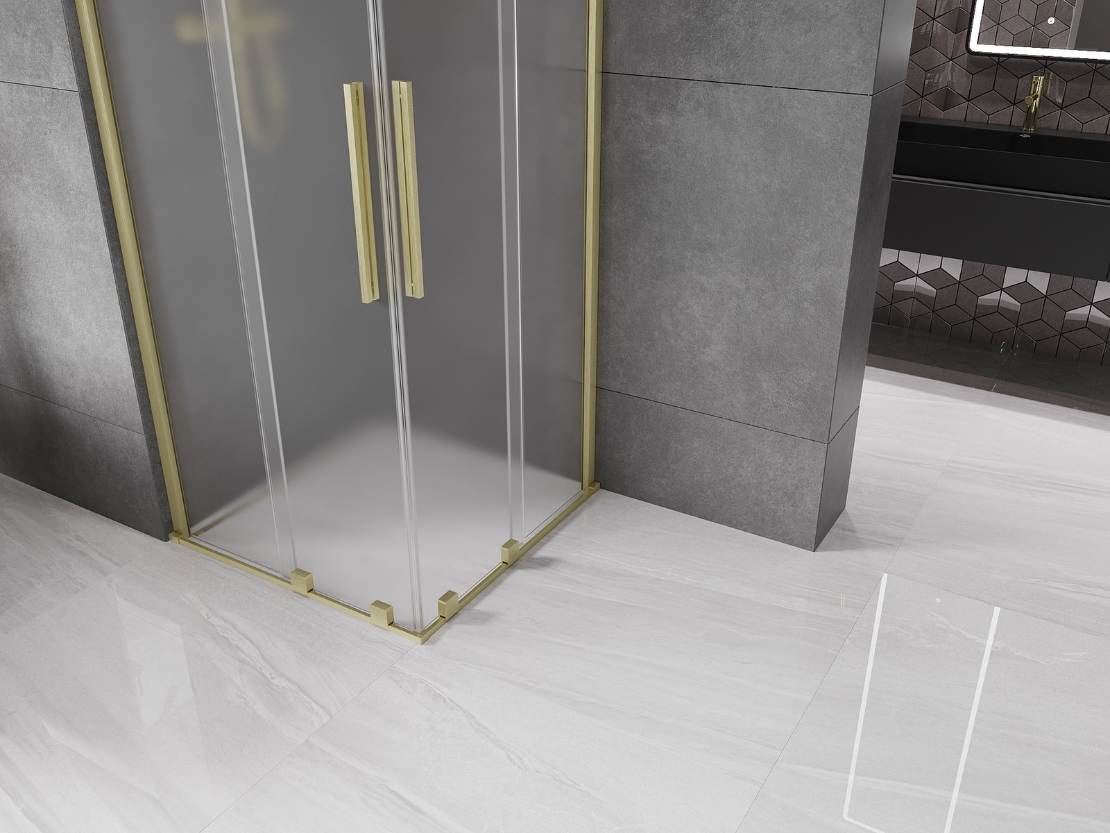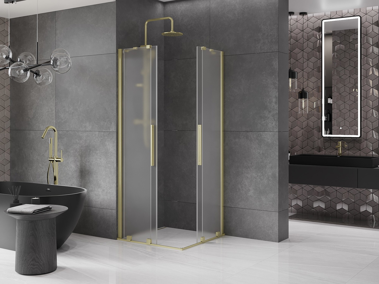 Mexen Velar Duo slankiojama dušo kabina 90 x 90 cm, matinė, aukso spalvos šepečiu valyta - 871-090-090-32-55