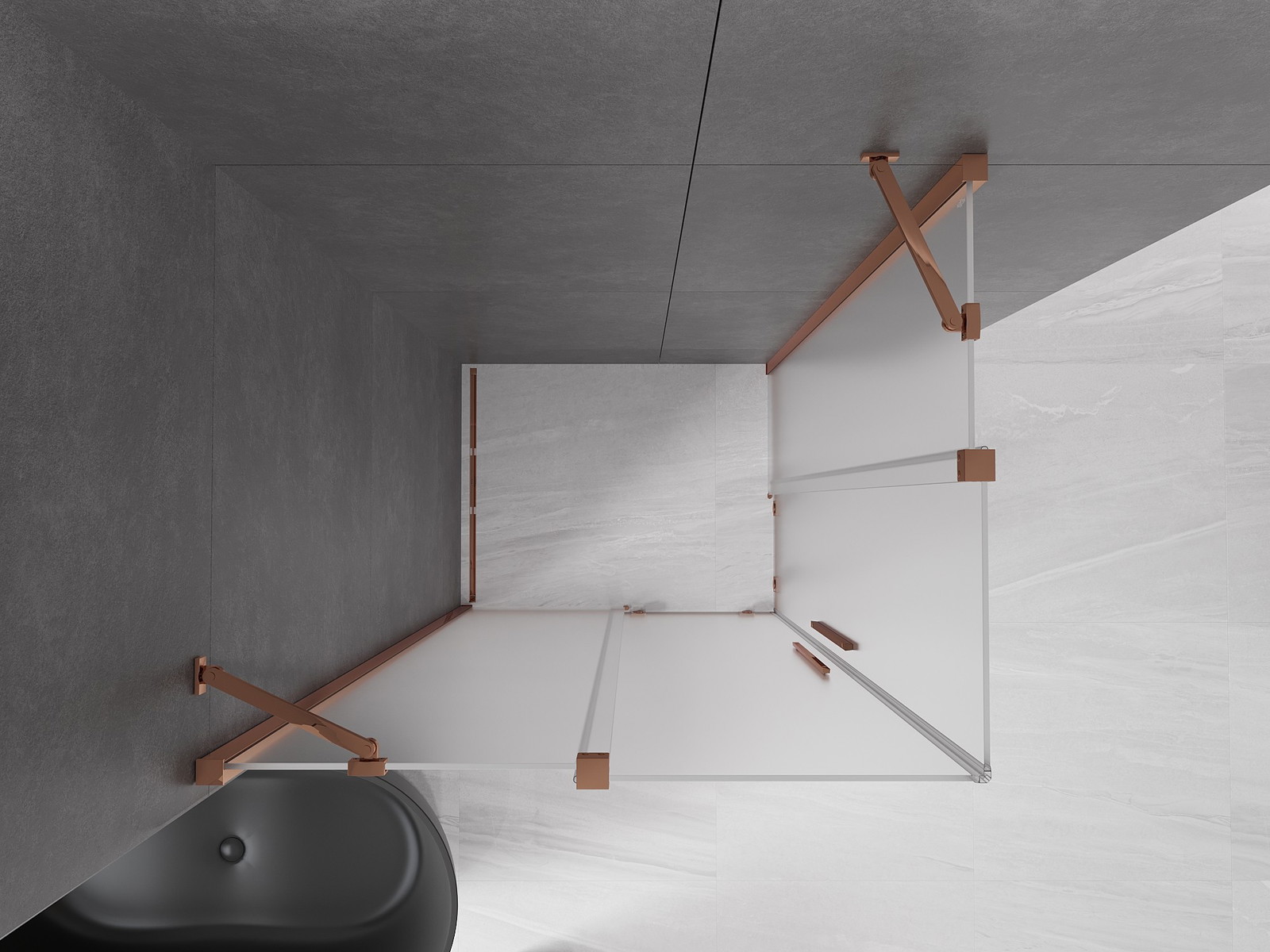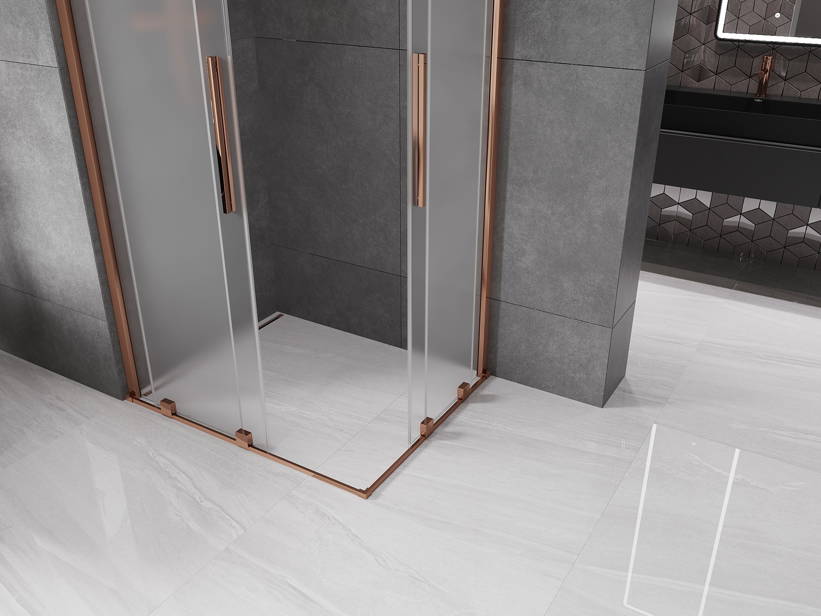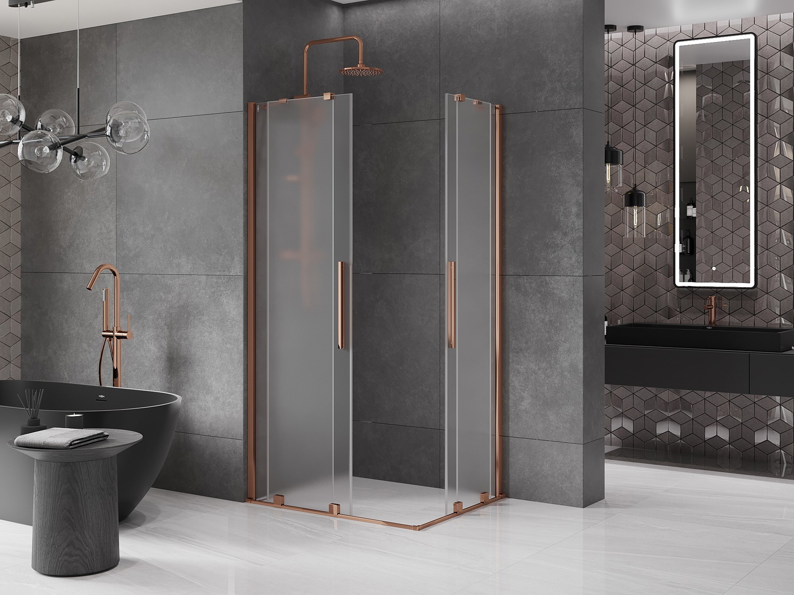 Mexen Velar Dviguba dušo kabina su stumdomomis durimis 90 x 80 cm, matinė, rausvas auksas - 871-090-080-32-60
