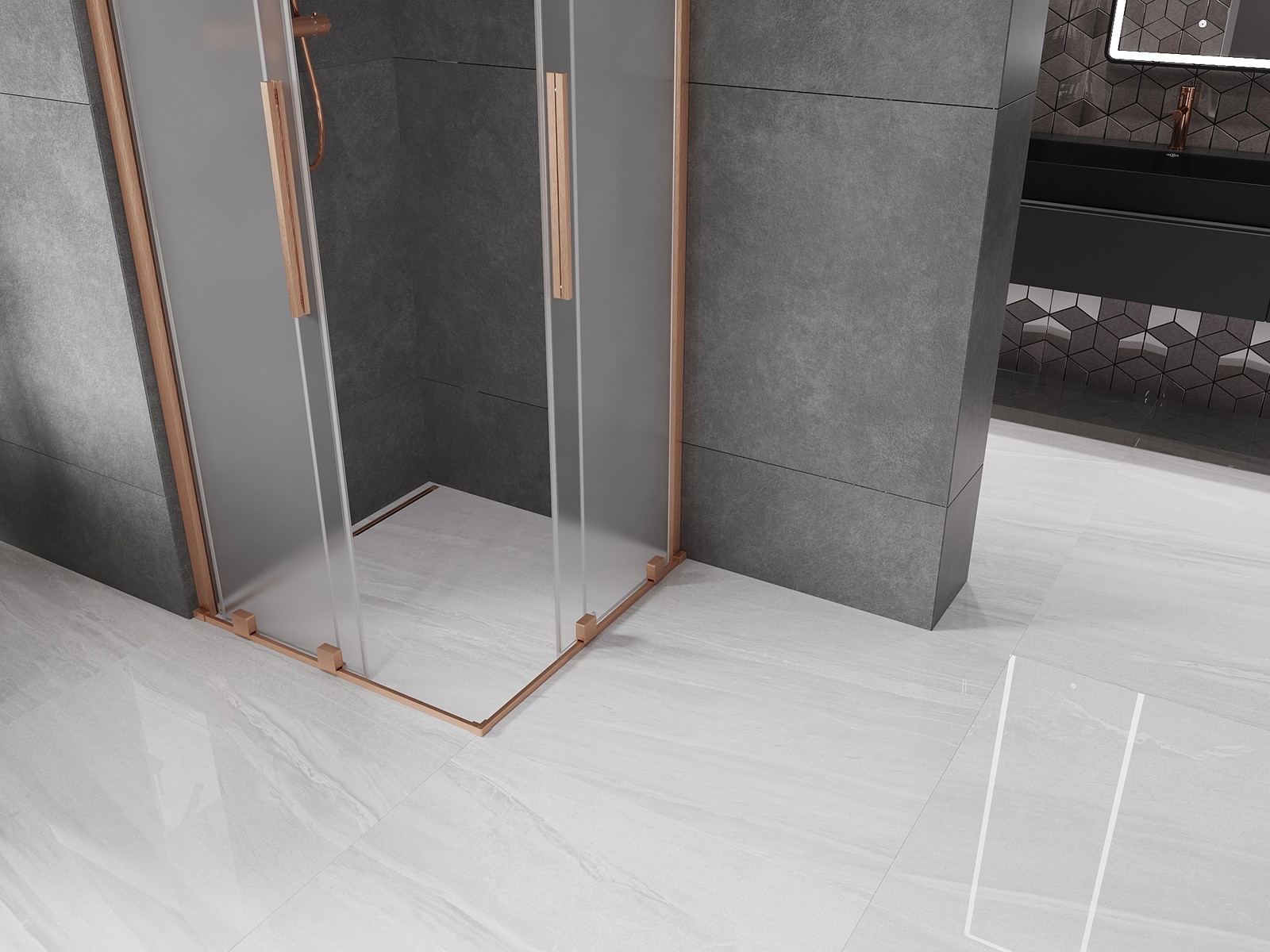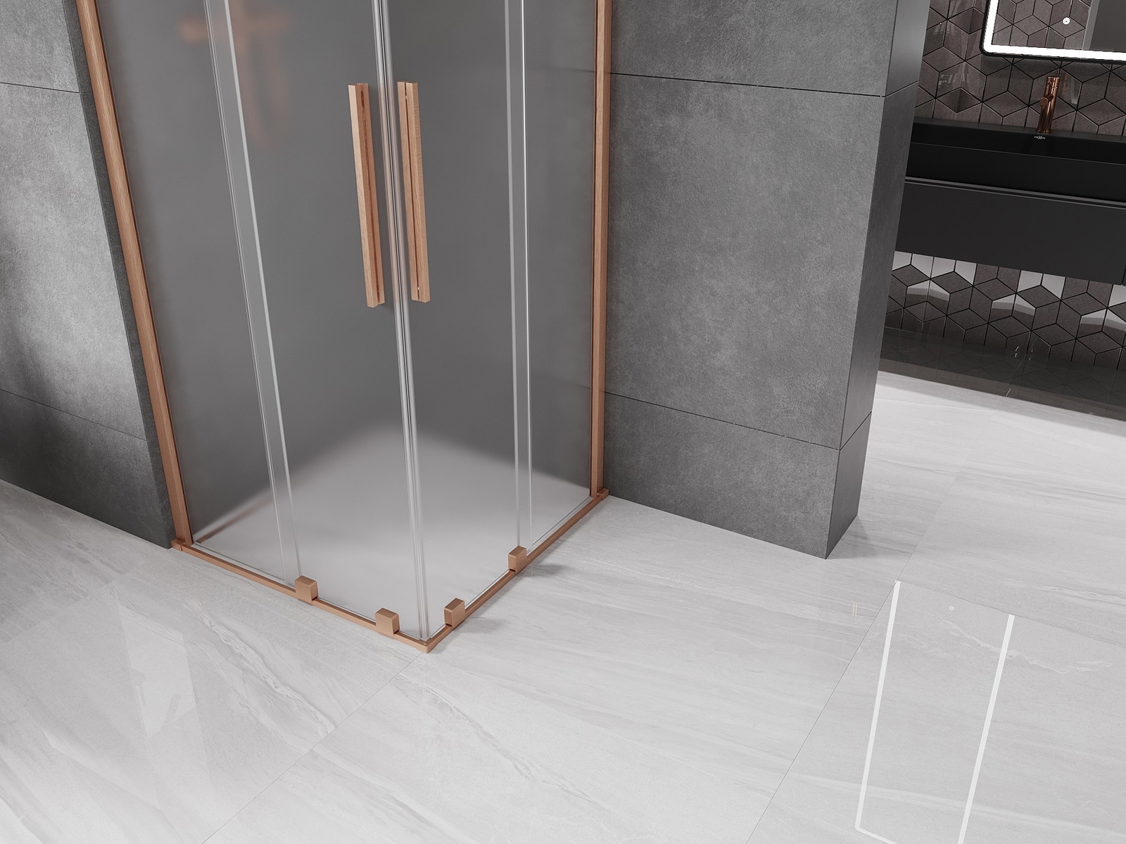 Mexen Velar Duo yra elegantiška slankiojanti dušo kabina, kurios matmenys 100 x 100 cm, ideali moderniam vonios kambariui. Jos universalus montavimas ir galimybė įrengti ant padėklo arba plytelių daro ją itin universalia. Tvirto, grūdinto stiklo (8 mm storio) matinė apdaila suteikia privatumo, o šlifuotas varis suteikia prabangos įvaizdį. Slankių durų sistema su aukščiausios kokybės ritinėliais ir plienine rankena garantuoja patogumą. Be to, sienos nelygumų kompensavimas ir pločio reguliavimas užtikrina puikų pritaikymą. Aliumininis durų sandariklis ir visos tarpinės efektyviai nuveda vandenį, o danga, palengvinanti valymą, leidžia kabiną lengvai prižiūrėti.