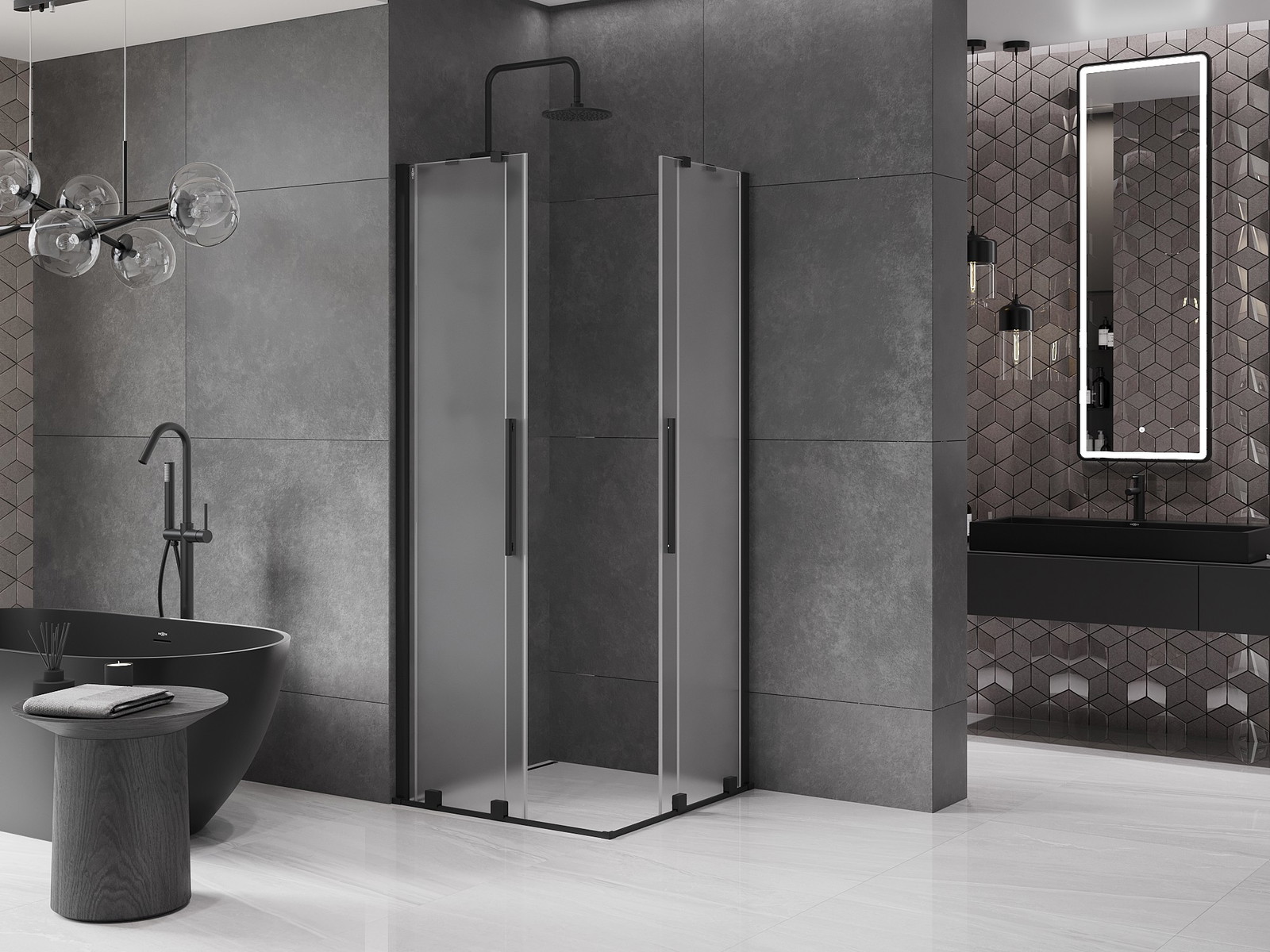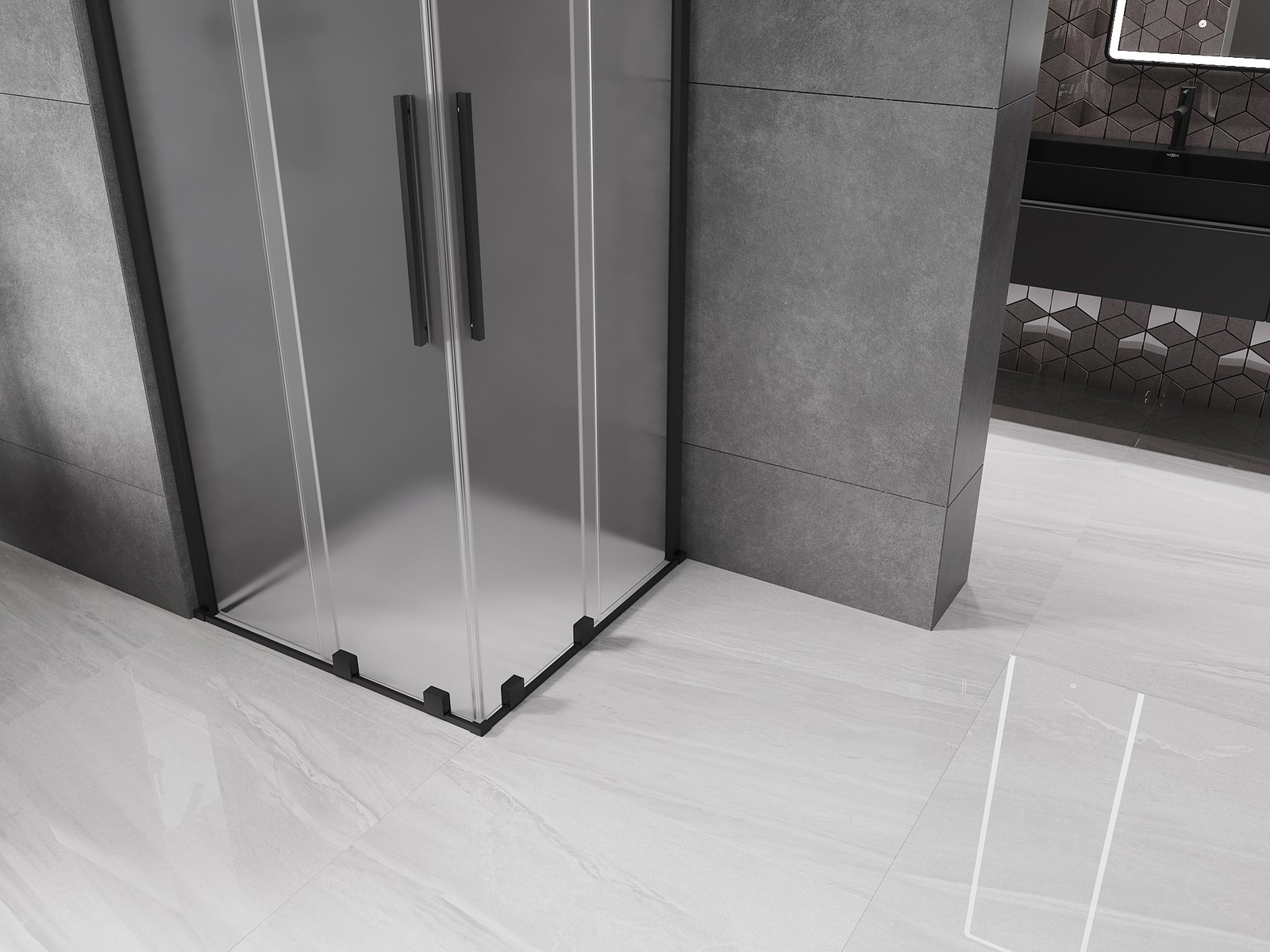 Mexen Velar Dviguba ištraukiamoji dušo kabina 80 x 80 cm, šerkšnas, juoda - 871-080-080-32-70