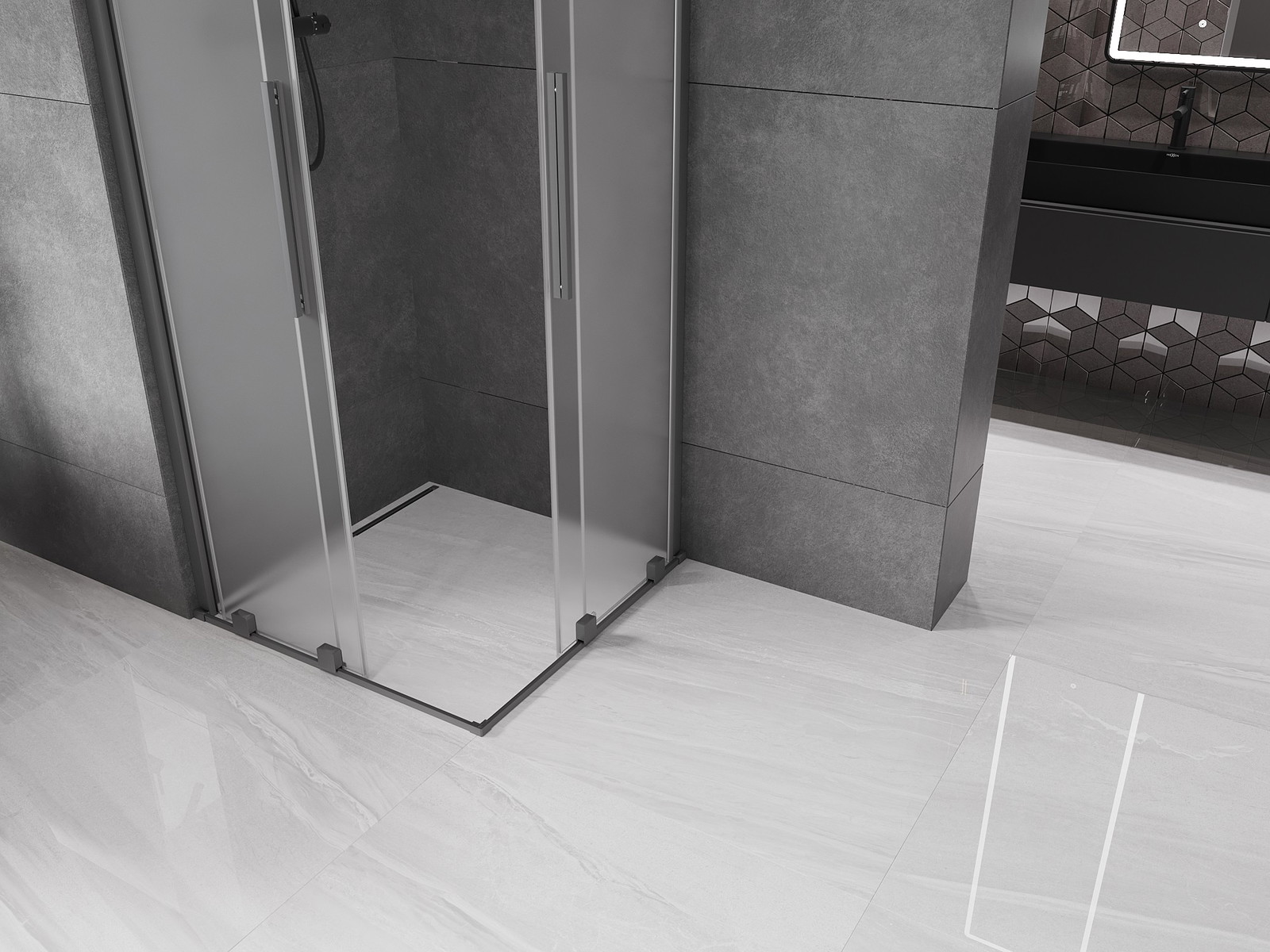 Mexen Velar Duo slankiojanti dušo kabina 80 x 80 cm, matinė, ginklo metalo spalva - 871-080-080-32-95