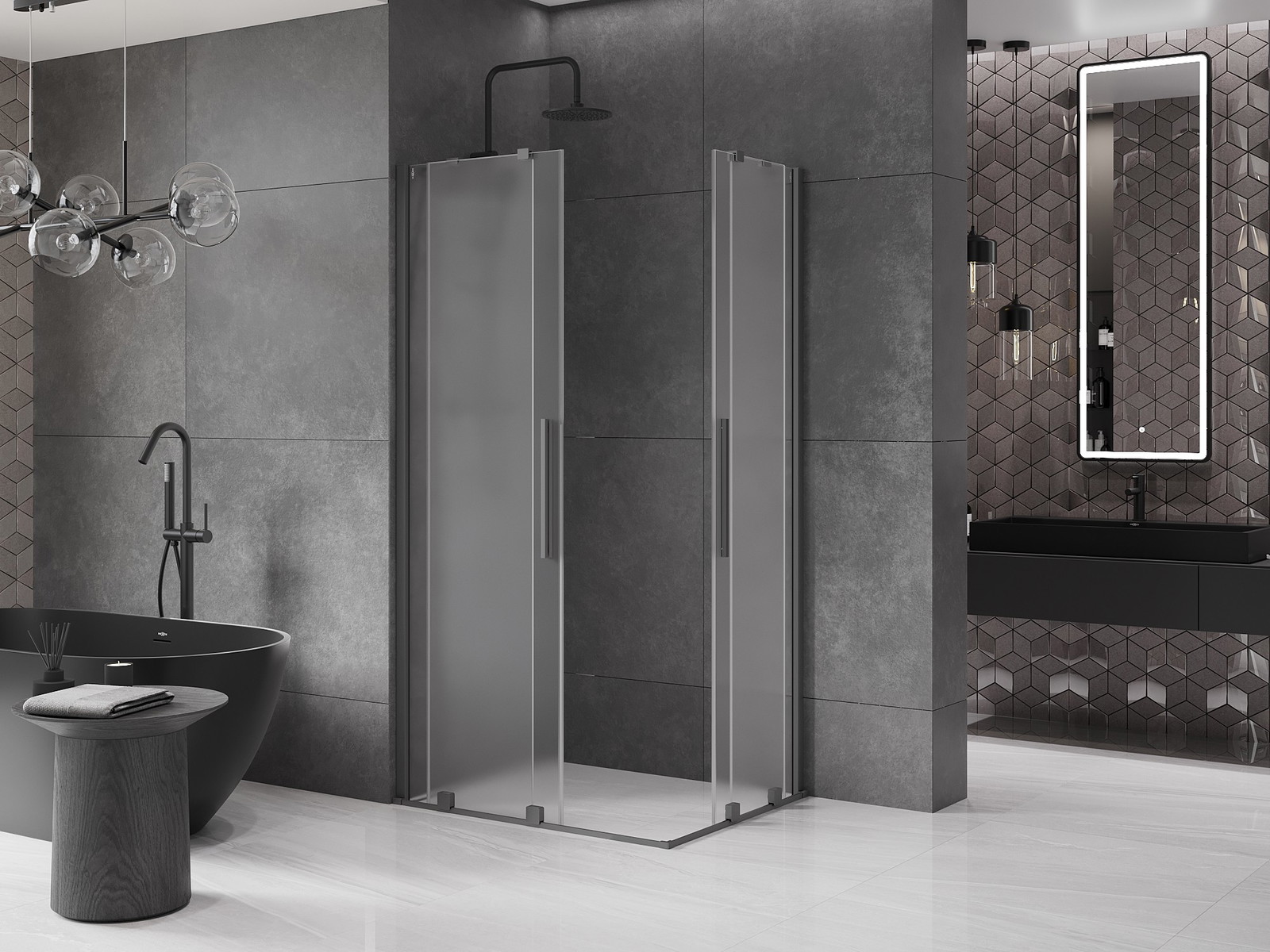 Mexen Velar Dviguba slankiojama dušo kabina 90 x 80 cm, matinė, gun metal - 871-090-080-32-95